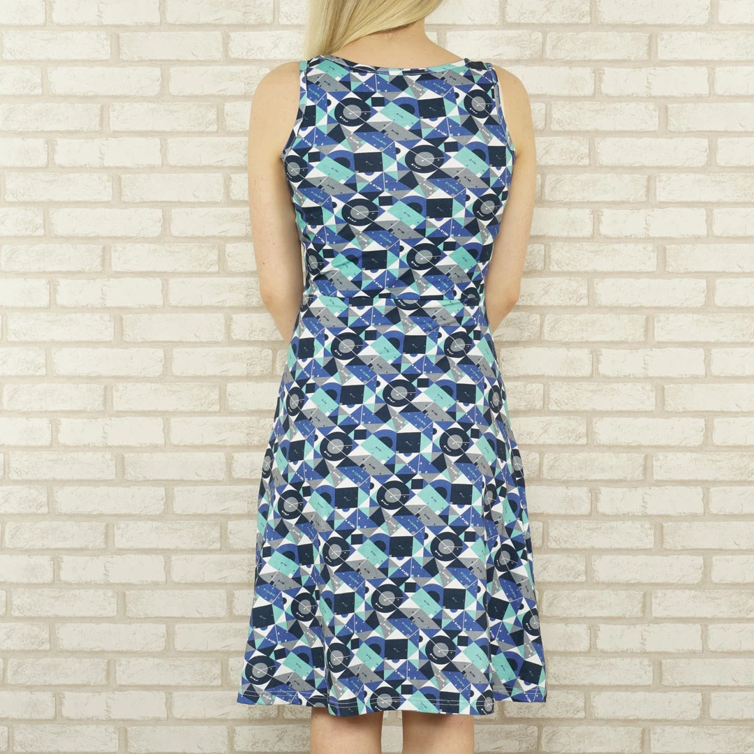 - Sleeveless, fit & flare dress with pockets featuring scoop neckline