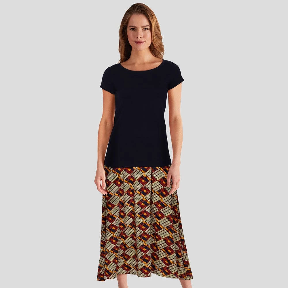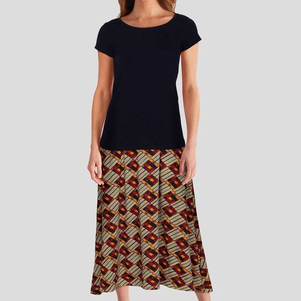 Check out this print! Overbooked with work and tasks? Feeling the need to treat your “shelf”? Overdue for a new skirt? Well, you’re in the right place. This skirt will turn the page with great print and volume!