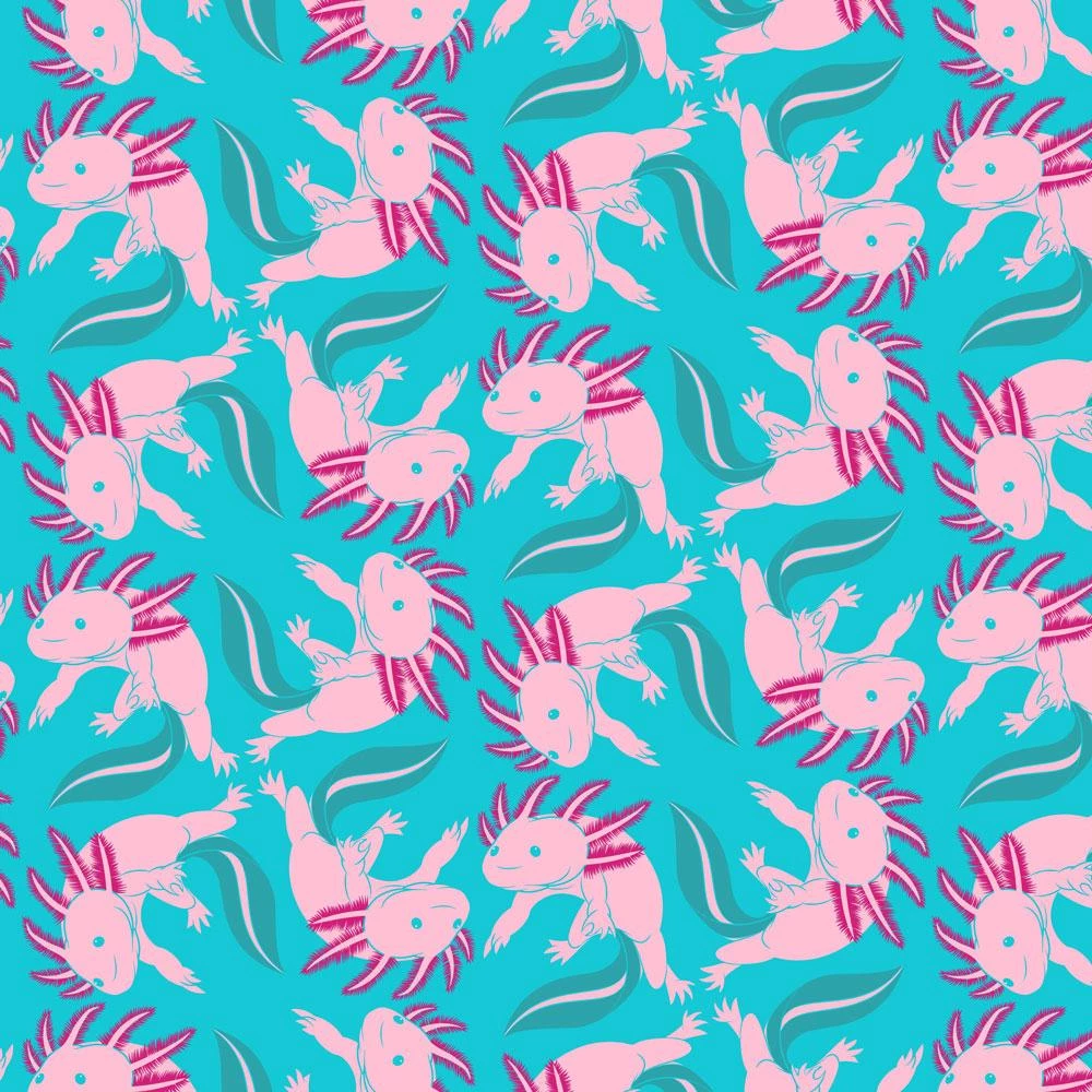 Stay forever young in this teal Axolotl print! Living exclusively within the lake complex of Xochimilco in Mexico City, axolotls have a special trait called neoteny, meaning that they retain their juvenile features even through adulthood. Show off this cheerful pattern of water-dwelling salamanders, and fight axolotl extinction by spreading awareness!