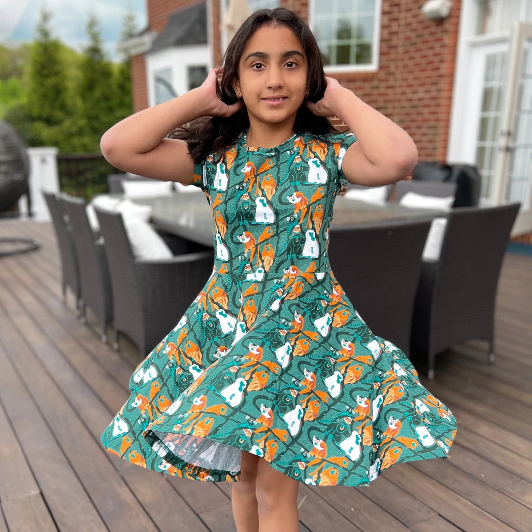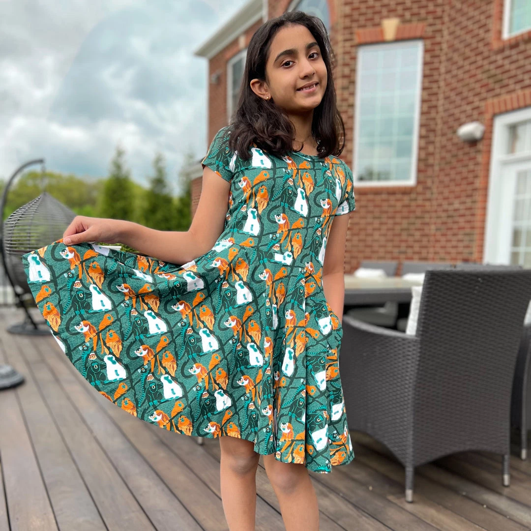 - Short sleeve, kids’ fit and flare twirl dress