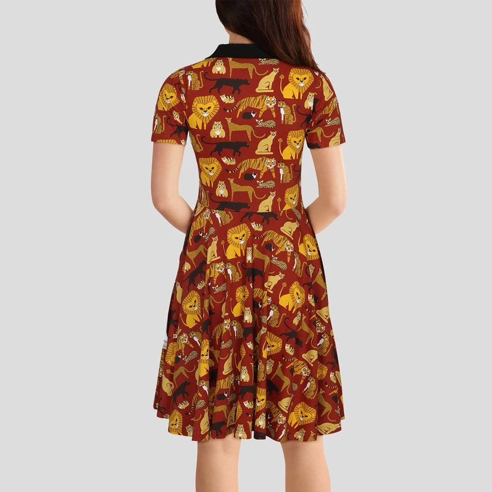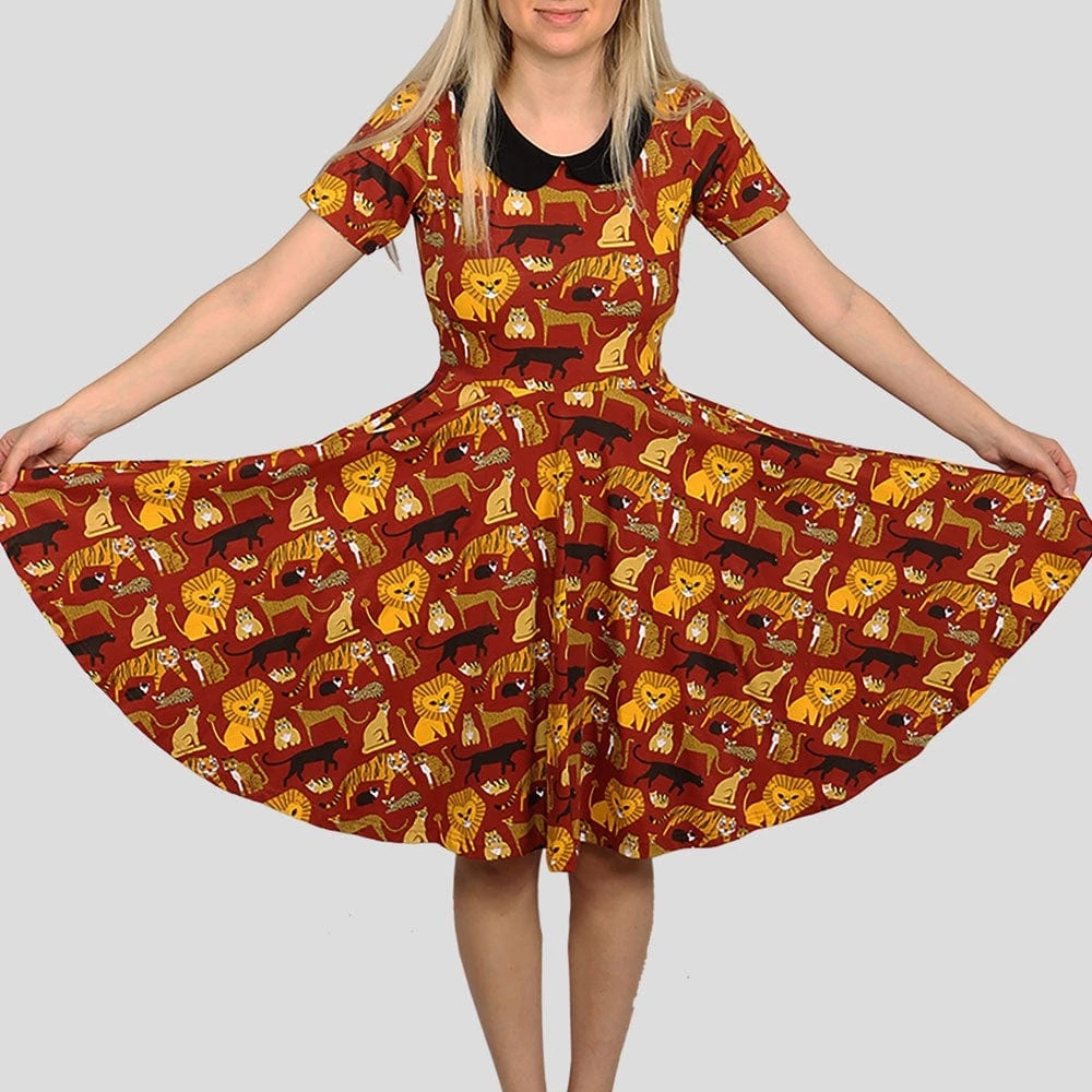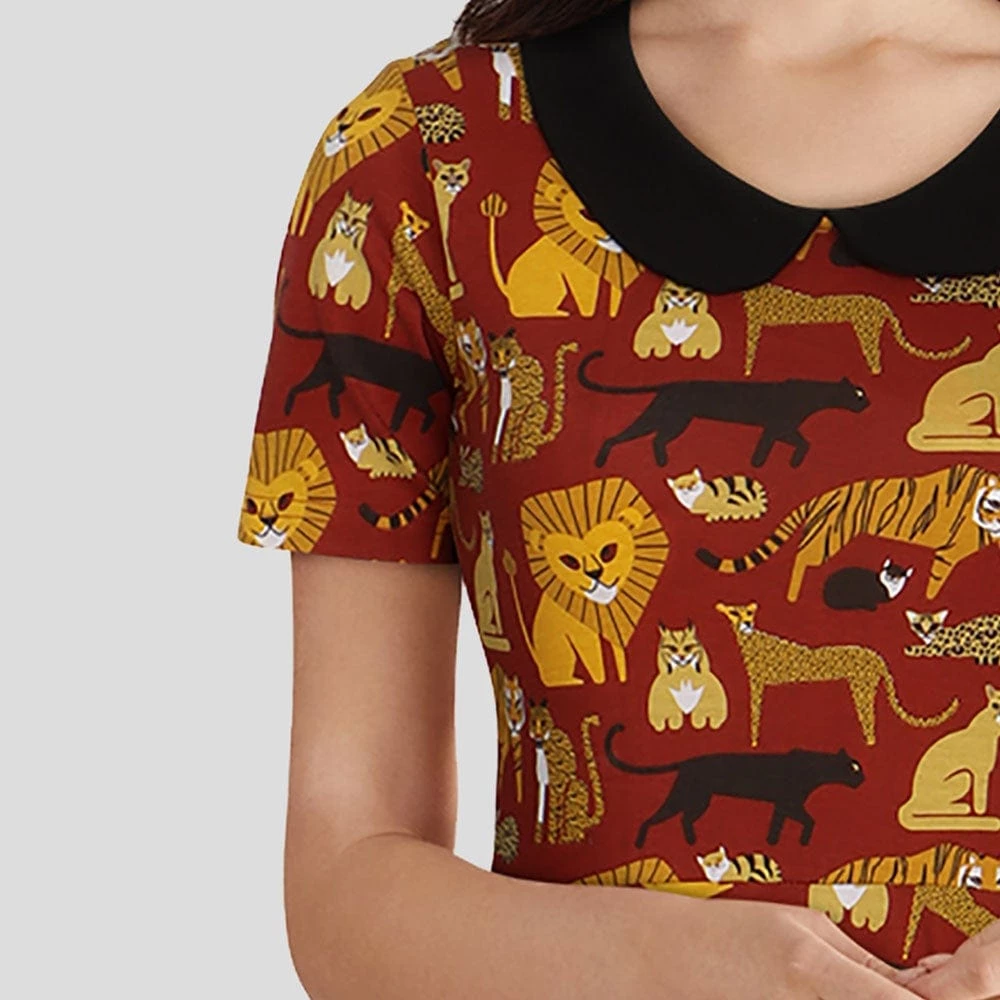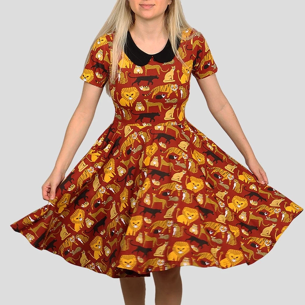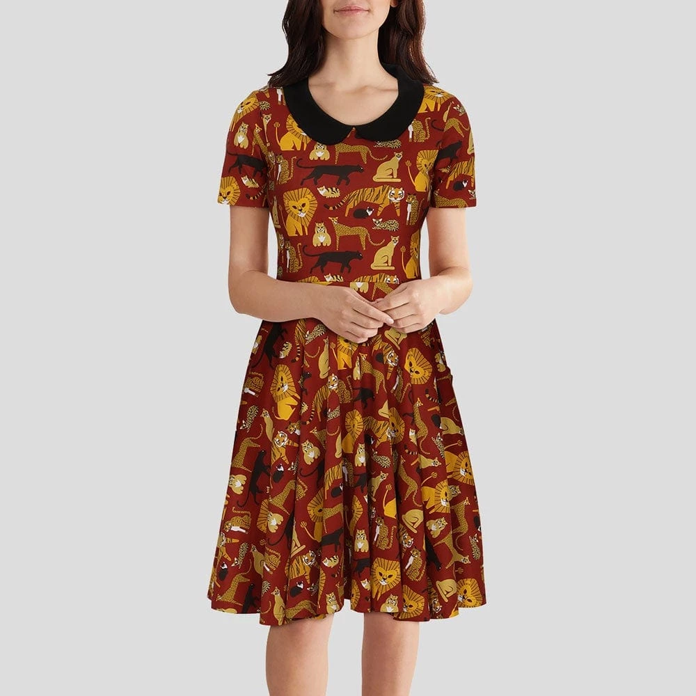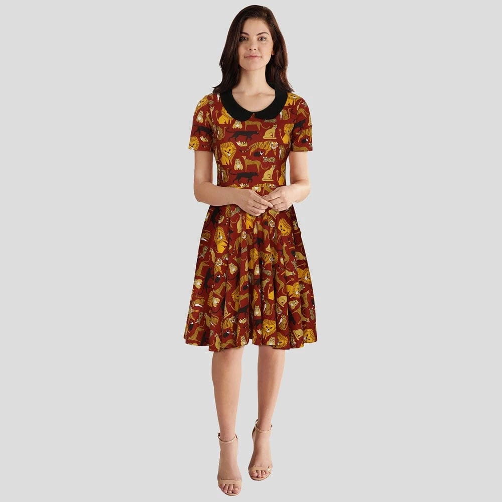 Did you know that some of the members belonging to the Felidae family are tigers, lions, and smaller animals like domestic cats and bobcats? As one of the highest predators, this cat family helps keep the population of species under control. Home is where your cat is and, so is this graceful dress that will have you feline good!