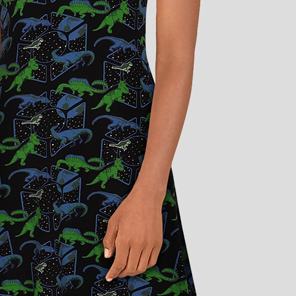Karen Nyberg, a mechanical engineer and retired NASA astronaut, spent 166 days on the International Space Station back in 2013. Nyberg wanted to create a keepsake for her son- who loves dinosaurs- so she crafted a stuffed dinosaur toy using fabric recycled from Russian food containers and then stuffed the little dinosaur with cut strips of cloth from one of her used t-shirts and hand-stitched it with the ivory thread. How amazing and creative is that? In addition to this inspiration, Karen Nyberg’s son, Jack, picked out 4 of his favorite dinosaurs which resulted in the creation of this space fashion collection. This fun design is our first-ever collaboration and we’re grateful that we get to share Karen Nyberg’s Astro dino-mite design with all of you!Â
