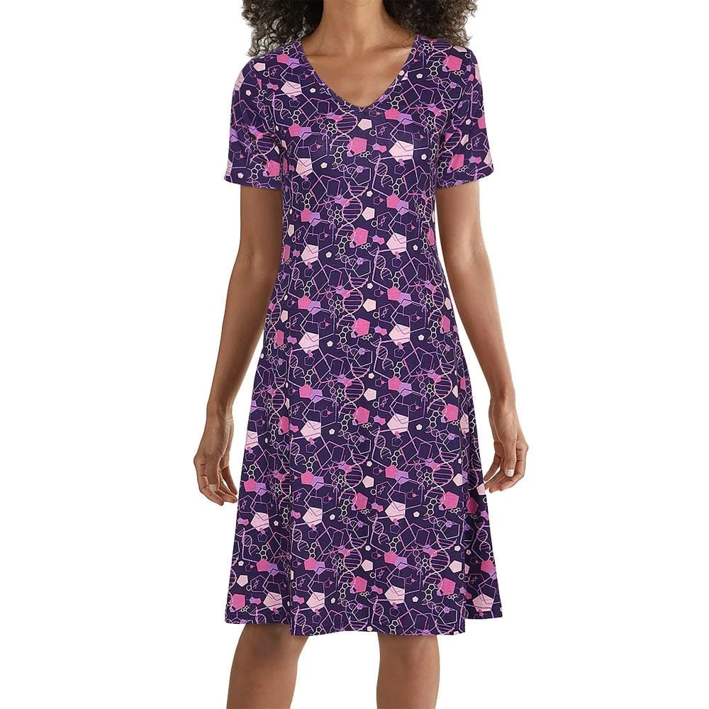 A Menagerie of DNA? How scientific! A DNA strand is made up of nucleotides, consisting of deoxyribose sugar, base, and phosphate. Many of the nucleotides are joined together to form a DNA strand and two DNA strands wind around each other to form a DNA molecule. This fascinating dress can be worn as the base of your wardrobe!