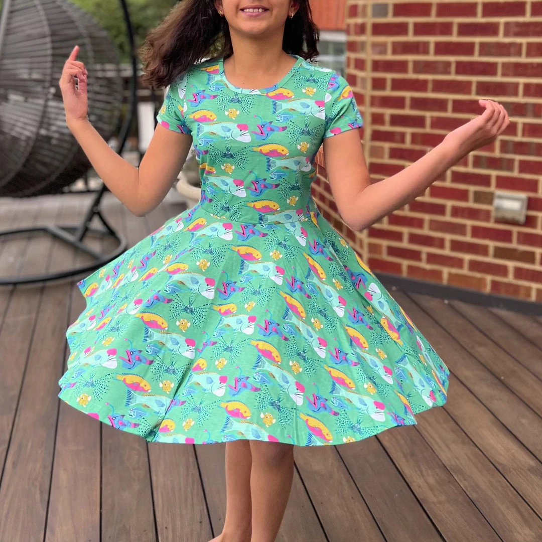 If wishes were fishes, this dress would grant all of your desires. Sadly they’re not, but they can still grant the wish of a new dress bedazzled by some of our favorite friends from beneath the waves! Don’t let their expressions fool you, we promise they’re just as excited as we are to scale up your fashion game.