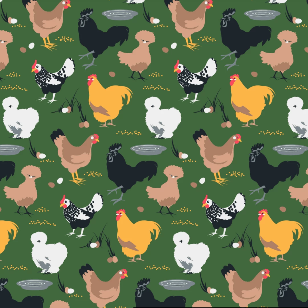 - Color: Green with chickens design