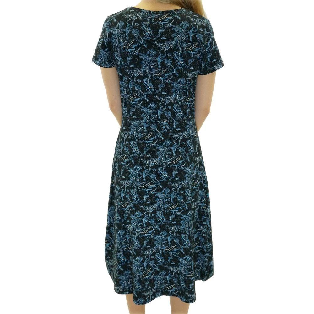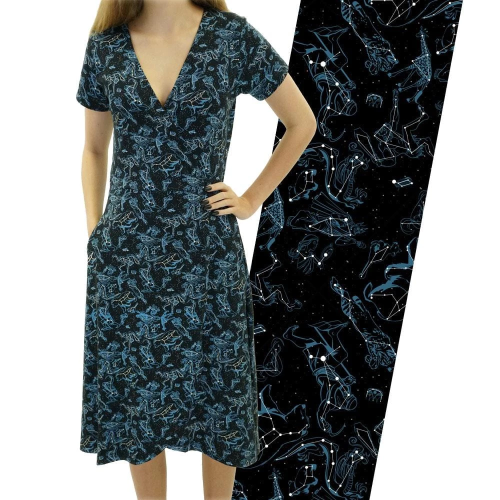 The constellations of the night sky are truly beautiful. They are named after mythological figures and other interesting things that use imagery from traditional astrology. A few of the constellations include Camelopardalis the Giraffe, the Lynx, Ursa Minor the little bear, Ursa Major the Great bear, Corona Borealis the Northern Crown, Cepheus the king, Cassiopeia the Seated Queen, Coma Berenices, Draco the dragon, and Boötes the ploughman. Take in the beauty of it all with this constellation dress!