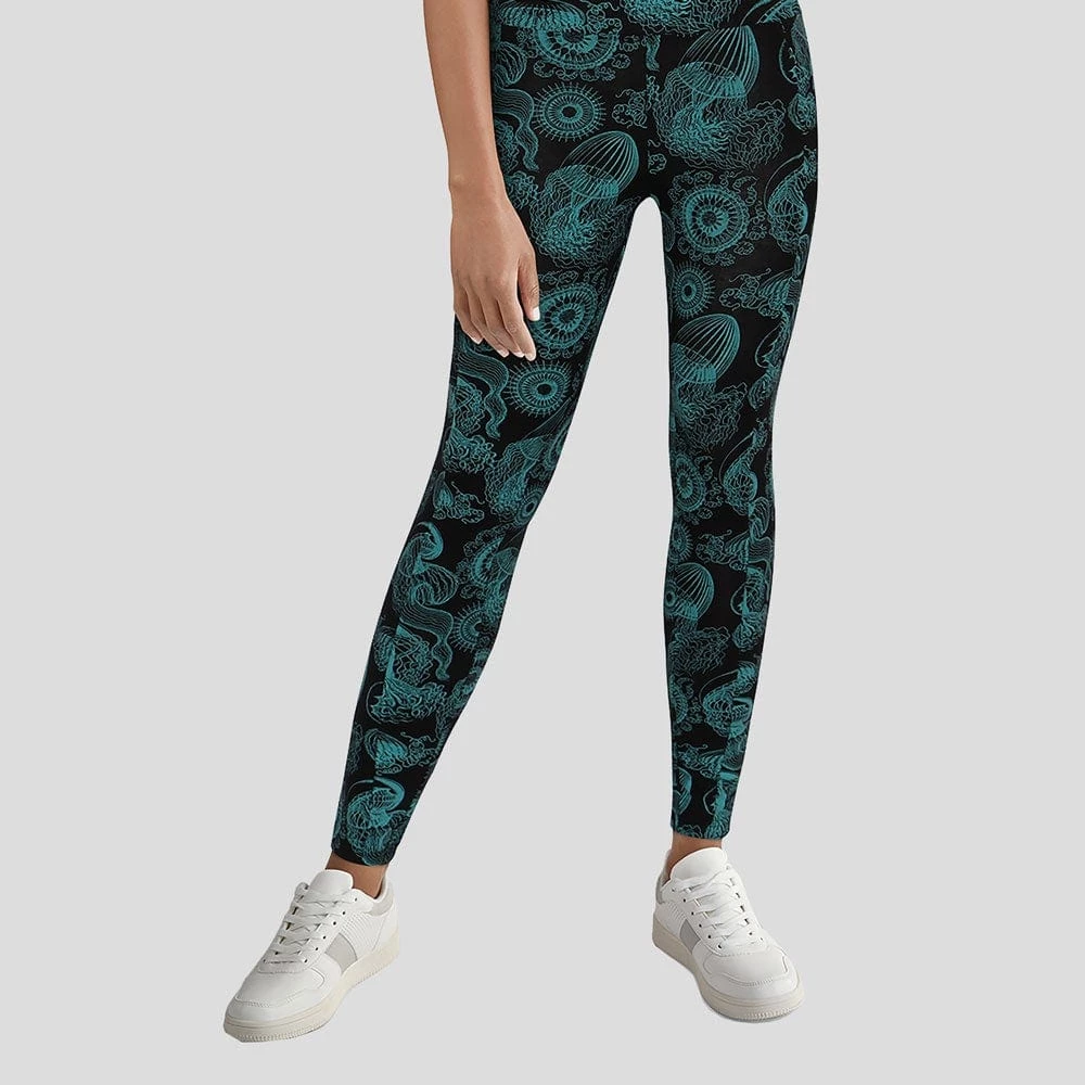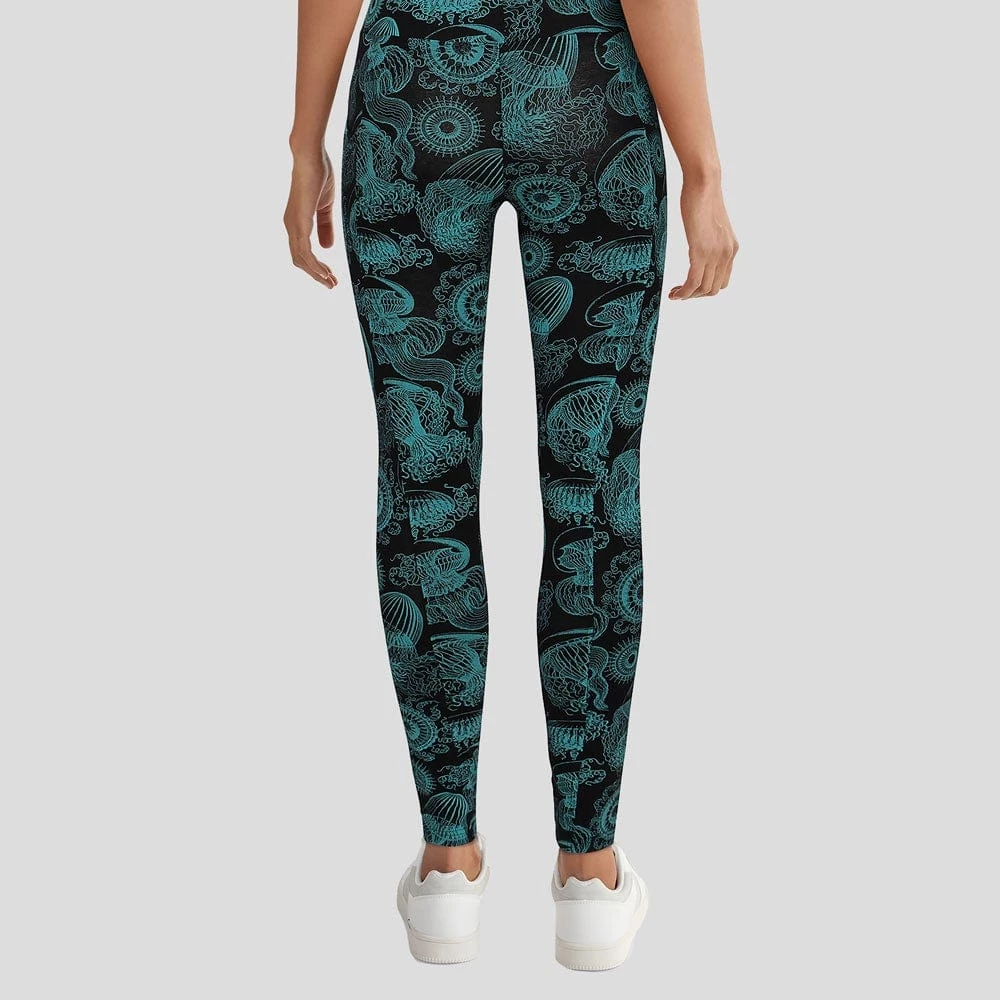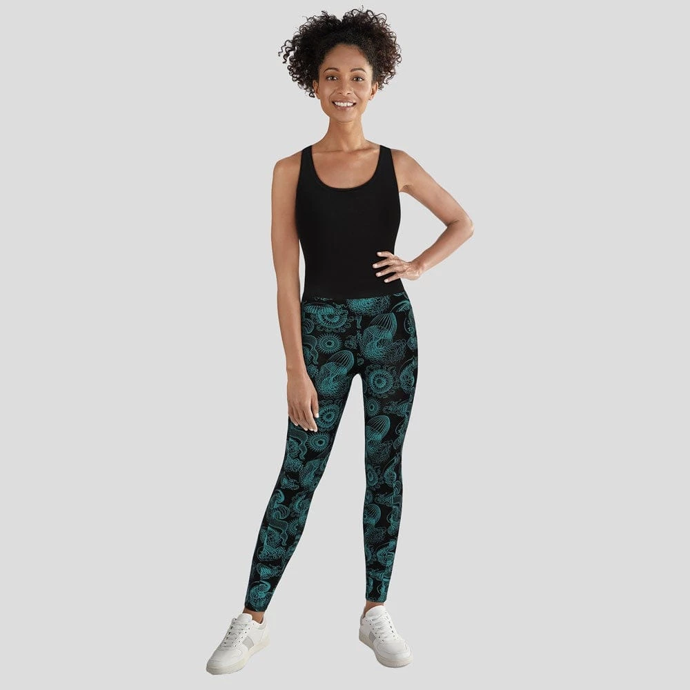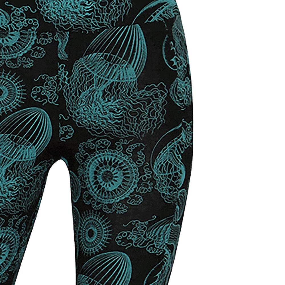 These geeky science-inspired leggings with pockets were created to celebrate our favorite gelatinous zooplankton! Jellyfish have been around for over 500 million years. Besides floating lazily in the ocean current and occasionally giving beachgoers a startling sting, jellies are super energy-efficient hunters. This glow-in-the-dark apparel shows off the beauty of the bioluminescent glow of these blobby predators!