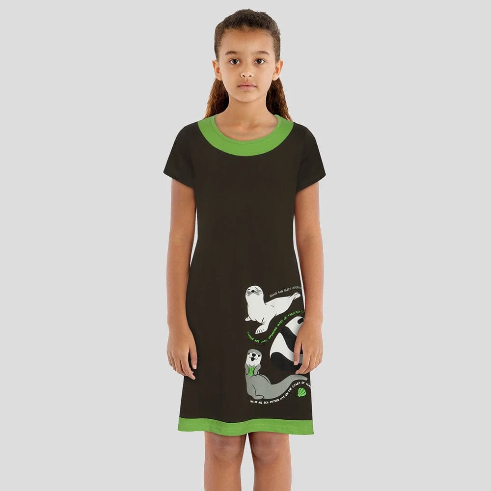 Did you know that seals can sleep underwater or that pandas spend most of their time eating and sleeping? Or how about 90% of all sea otters live on the coast of Alaska? Get otter here! Learn and share these cool wildlife facts as you wear this amazing dress!