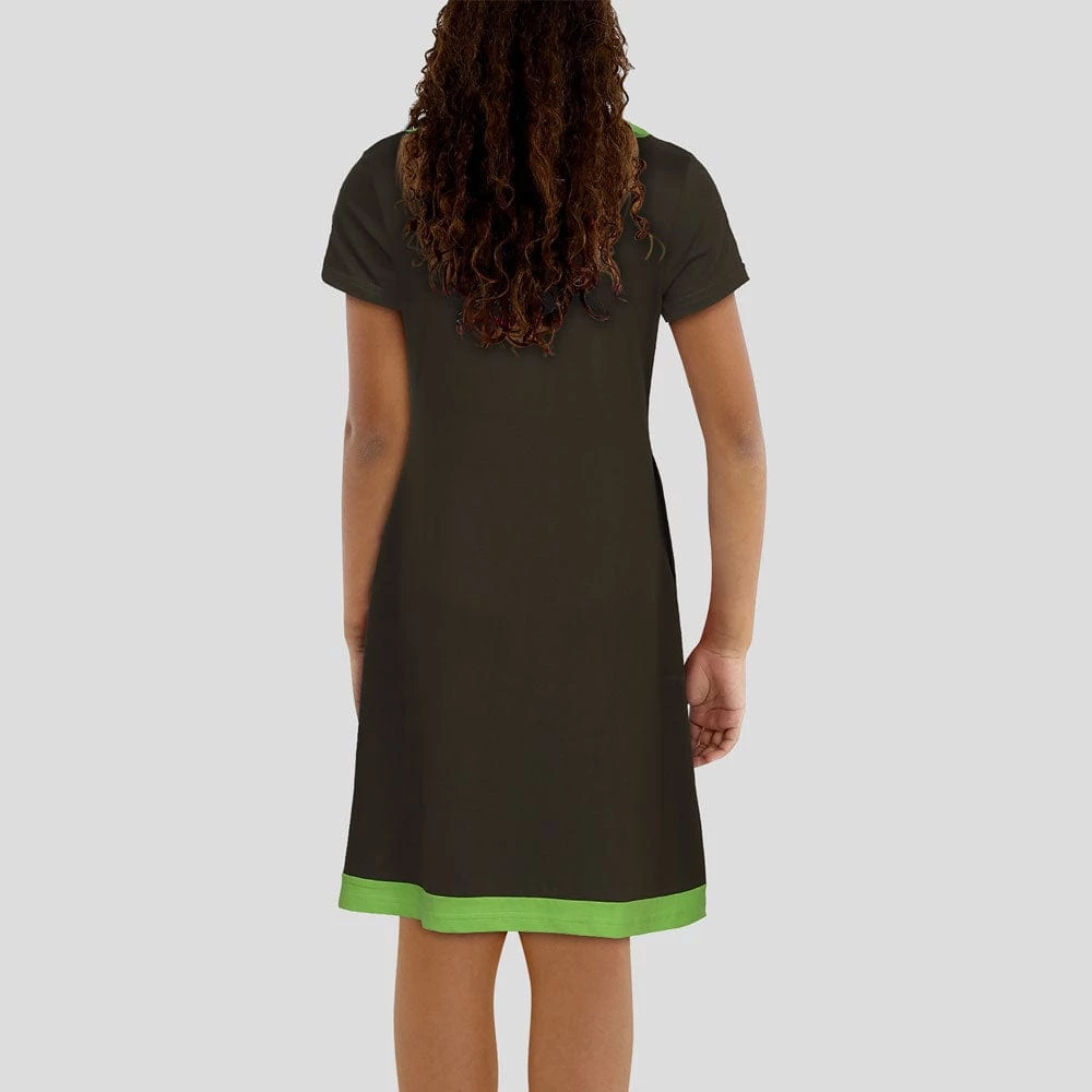 - Short-sleeve kids dress with functional pockets