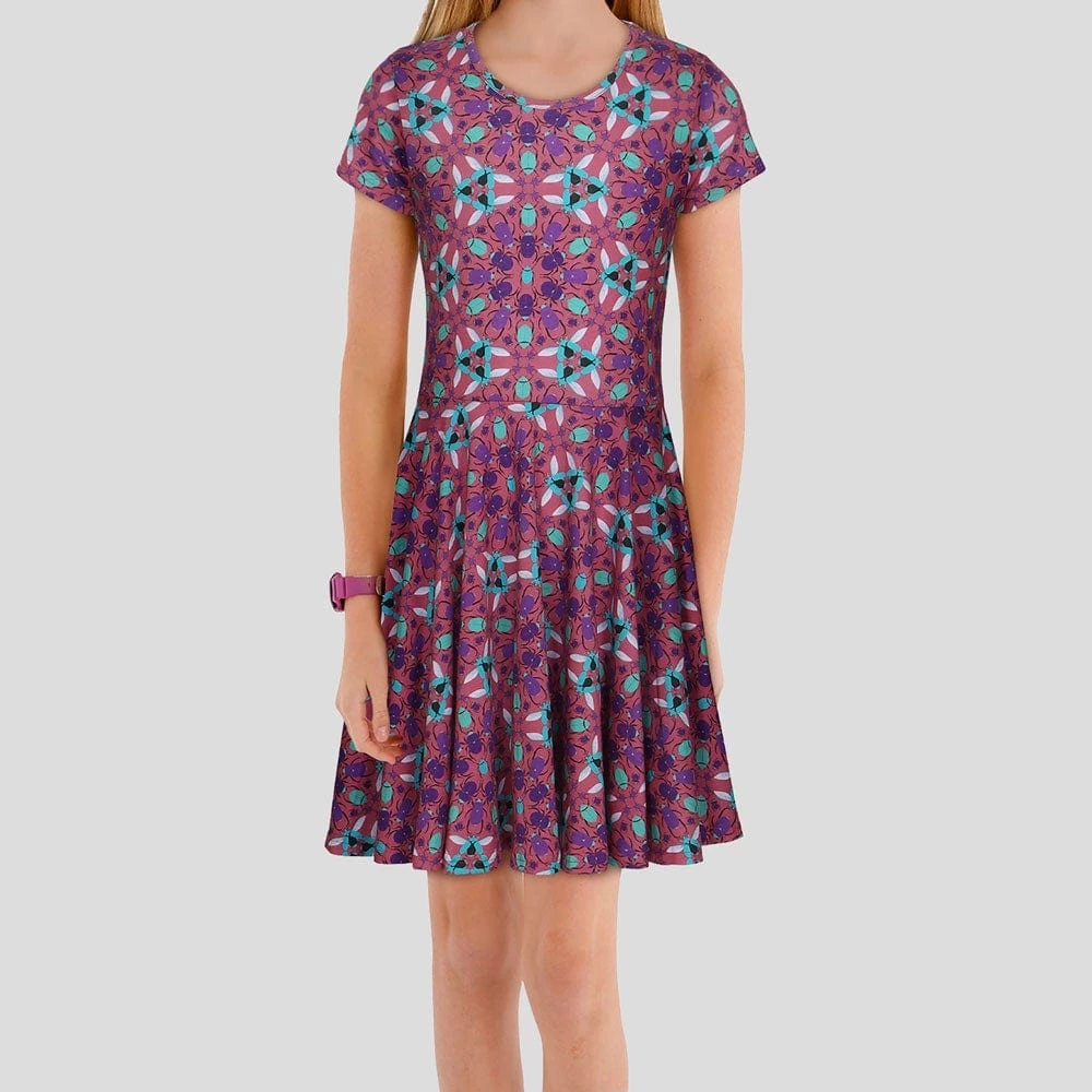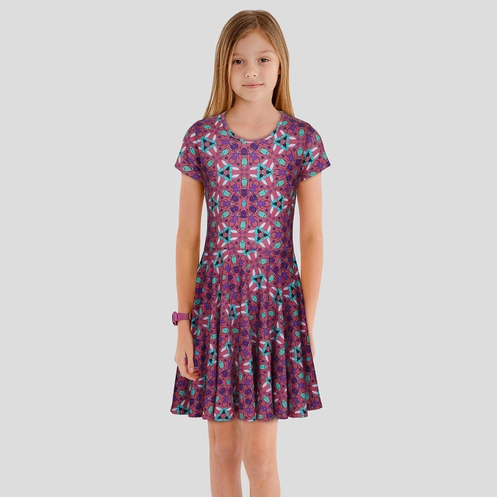 - Short sleeve, kids’ fit and flare twirl dress