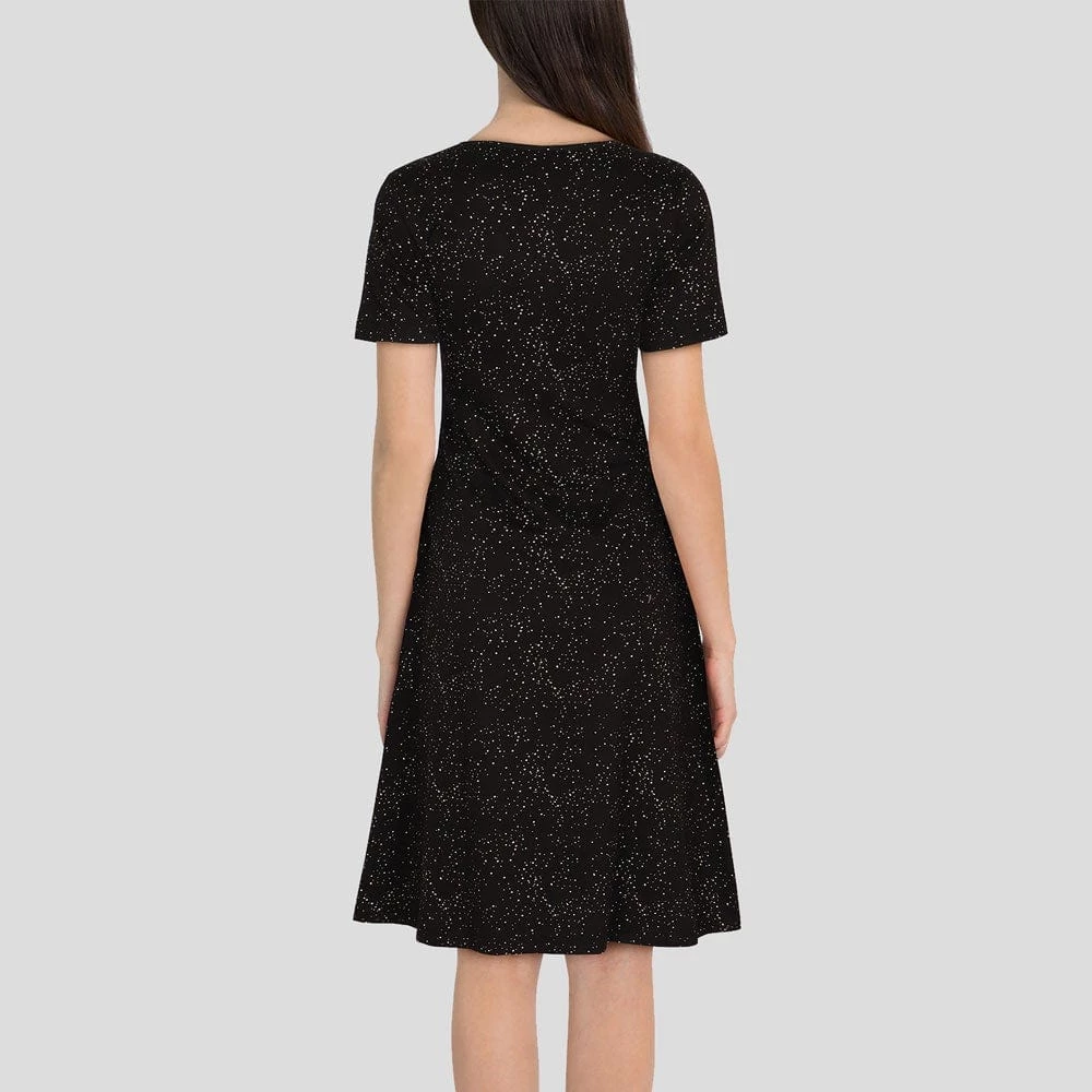 - Short sleeves, fit & flare dress with pockets and V-neckline