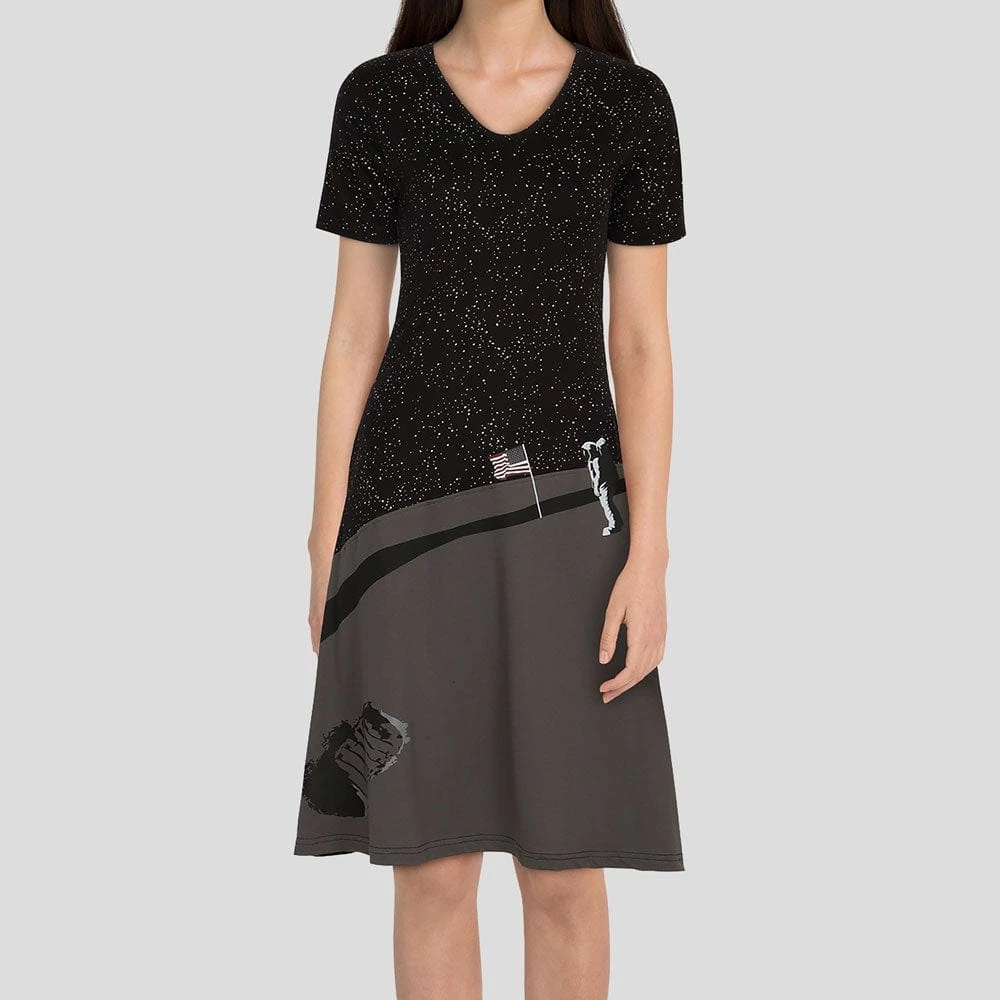 On July 20, 1969, two humans became the first to land on the moon. These two people are named Neil Armstrong and Edwin Aldrin. A few hours later, Neil Armstrong was the first person to walk on the moon. I think we can say this design is one small step for your wardrobe and one giant leap for fashion!