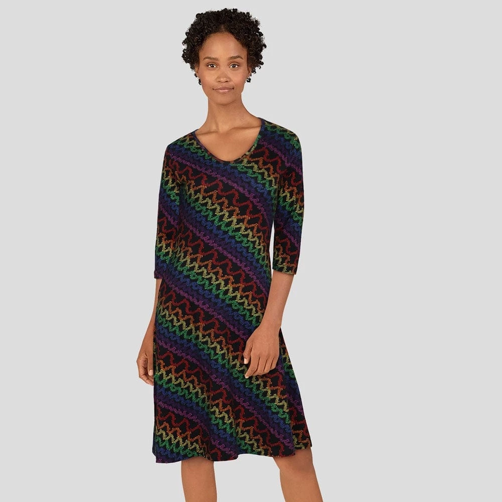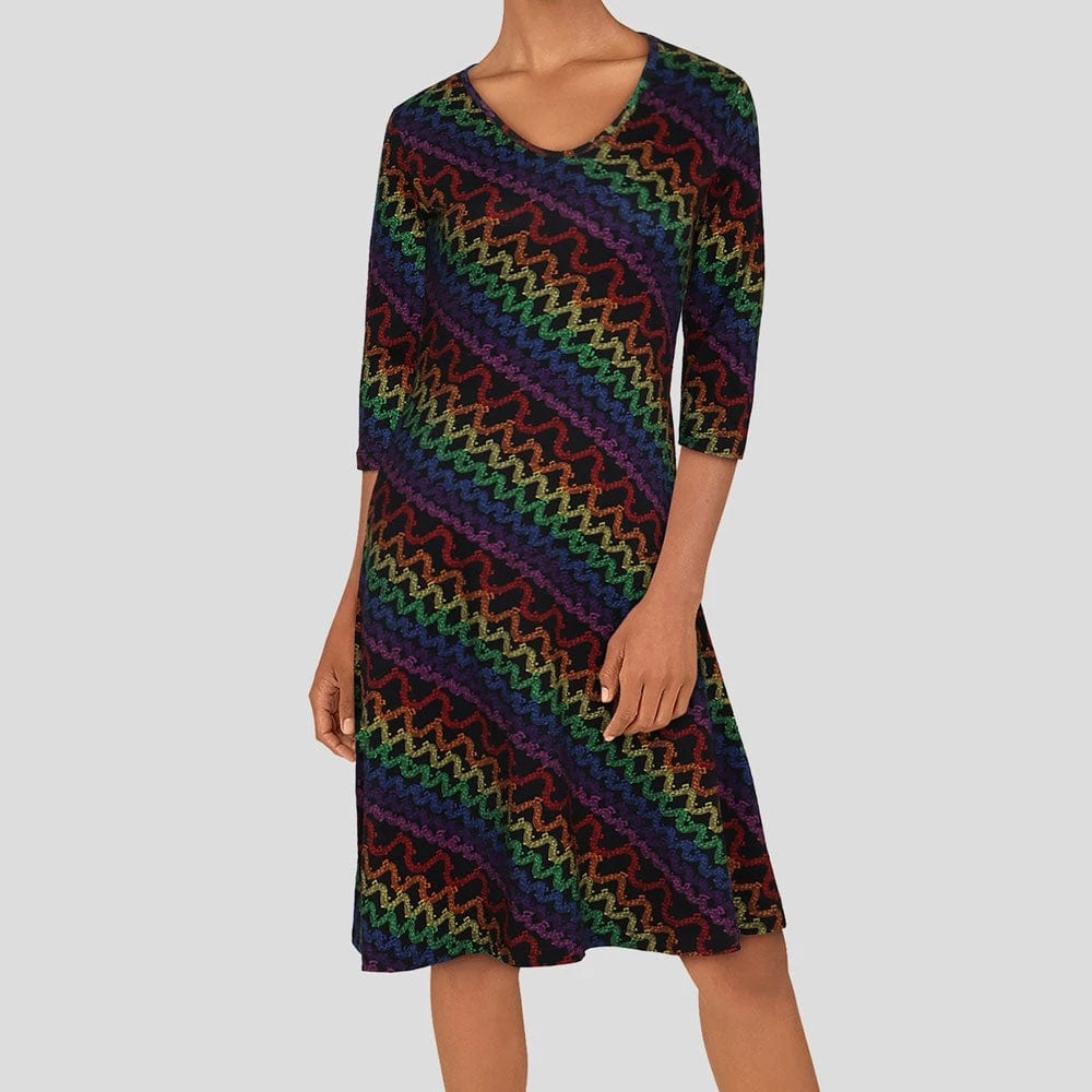 - 3/4 length sleeve, V-neck fit & flare dress