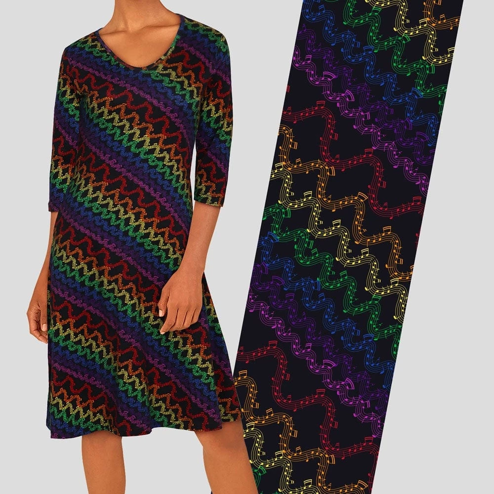 See the music within the design of this dress. Synesthesia is a cognitive and neurological experience in which senses become intertwined. People with color synesthesia, who perceive specific colors when hearing certain words, had areas of their brain activated in two different units of the brain. This dress surely is fundamental!