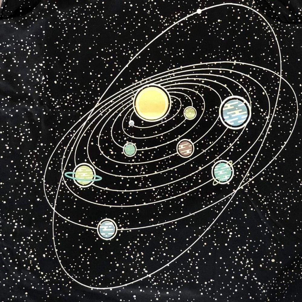 This astronomy-inspired women’s dress with pockets celebrates our solar system during the time in human history when we still had 9 planets. From 1930-2006, Pluto inhabited our hearts, minds, and the mnemonics of school children, as it was considered one of the major planets in our solar system. Though this oddball planet held strong as a member of the big 9 for 76 years, it didn’t even make one orbit around the sun (since that takes 248 years) before it was downgraded to a dwarf planet. We still have a lot of love for it, so we included in our design.