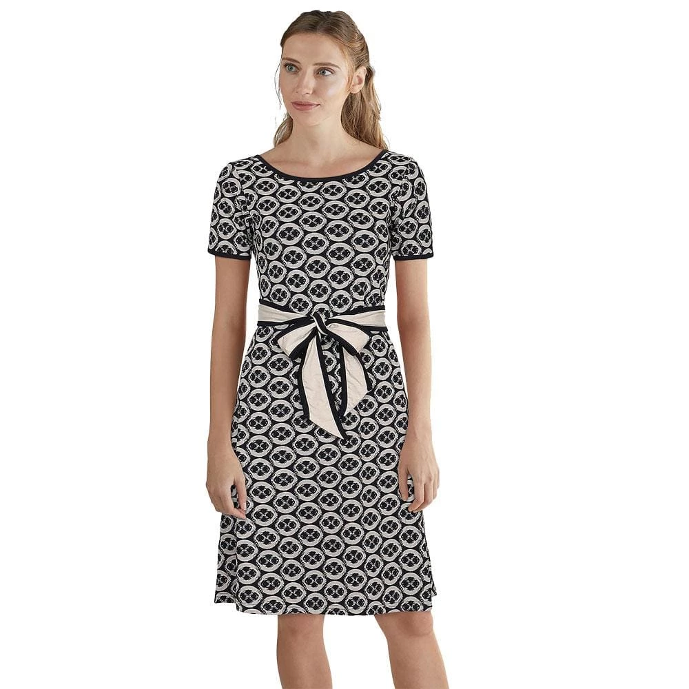- Short sleeve dress with a scoop neck, functional pockets and a belt