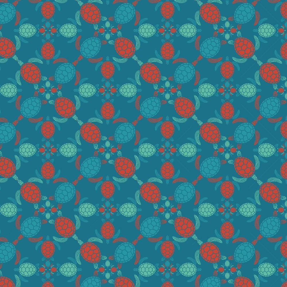 - Teal with red belt and printed sea turtles