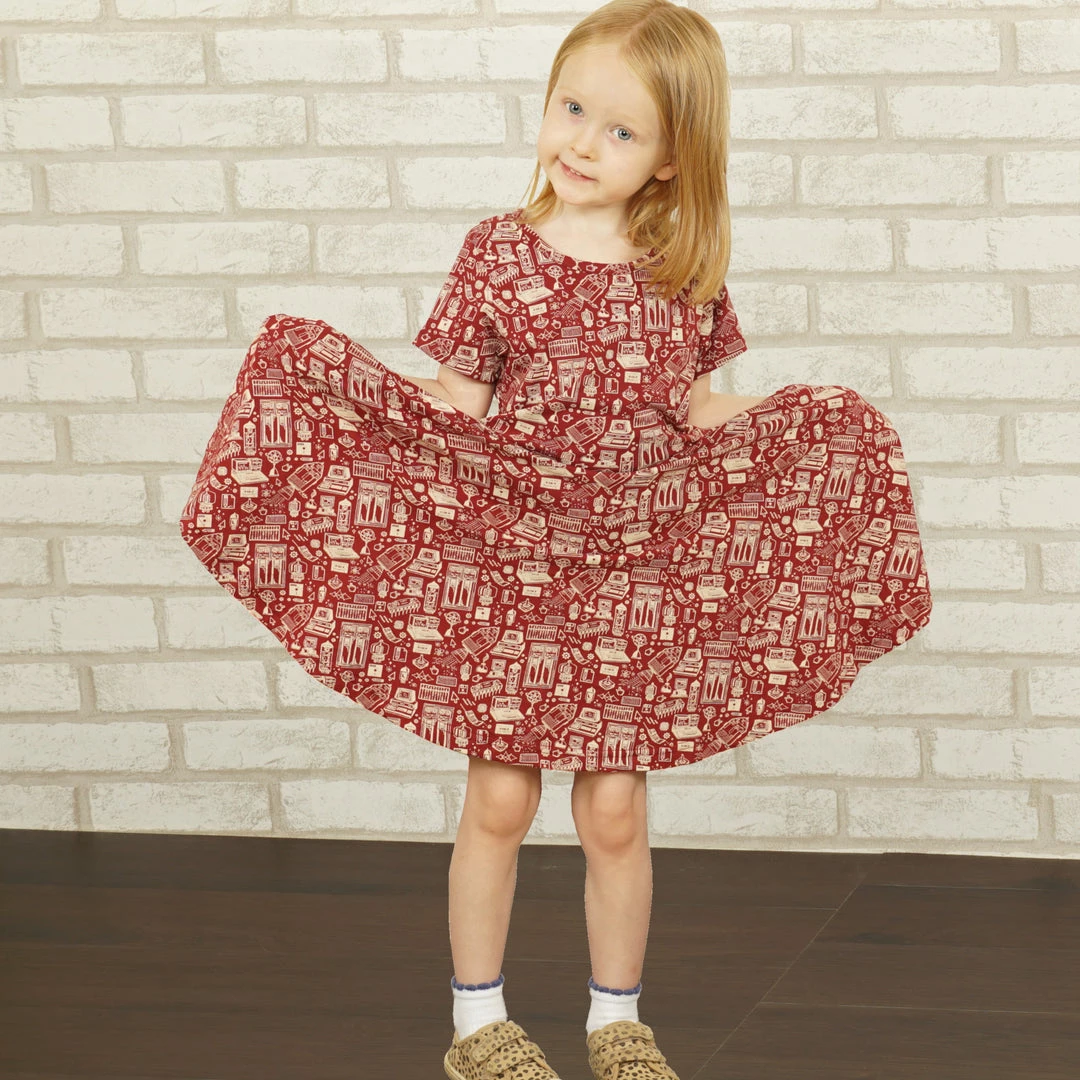 - Short sleeve, kids’ fit and flare twirl dress