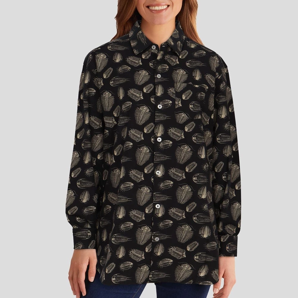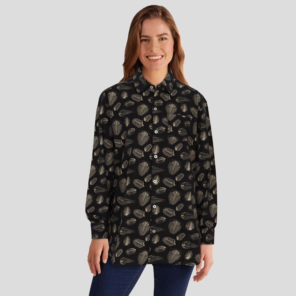 Can you guess who the most diverse group of extinct animals preserved in the fossil record are? Their name means “three lobes” relating to its unique body plan. Trilobites, also known as marine arthropods, had many lifestyles and fascinating diversification over time. They may be extinct, but this shirt is a treasure to have!