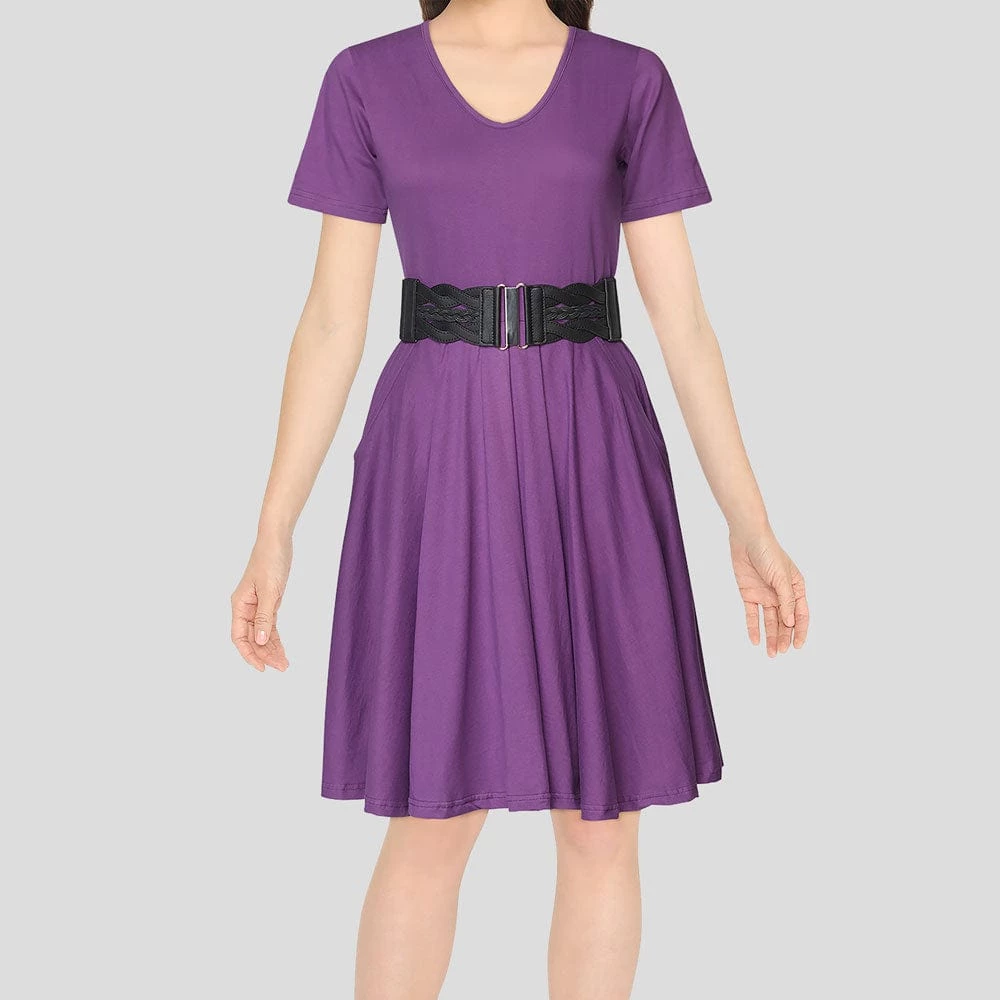 We designed this ultraviolet dress so that you can wear with fun accessories! These dresses are made with our super soft organic cotton and feel comfortable! Take a twirl in this amazing dress!