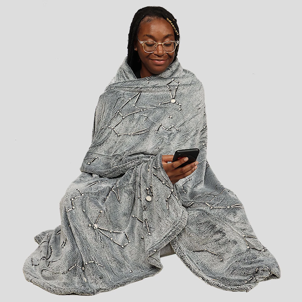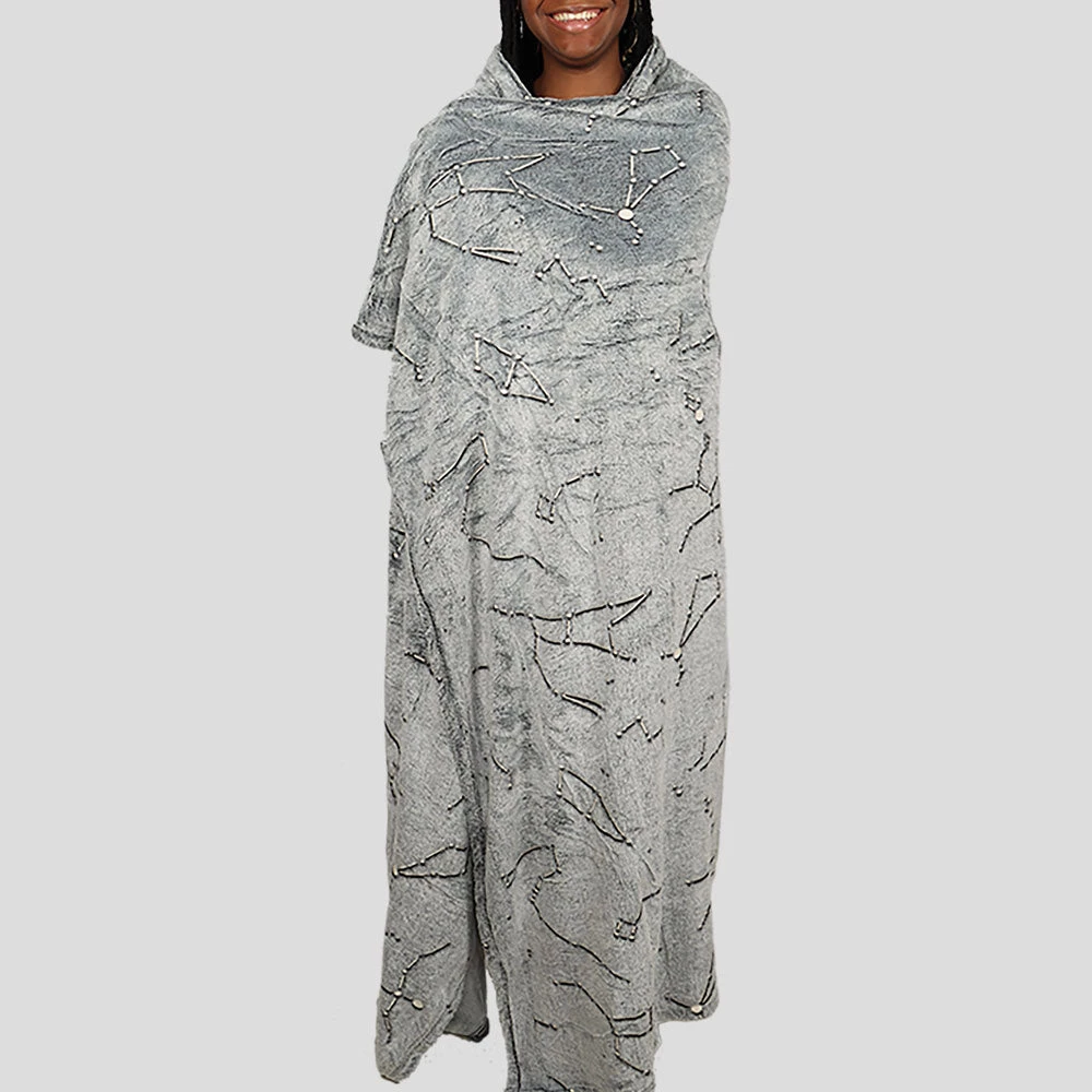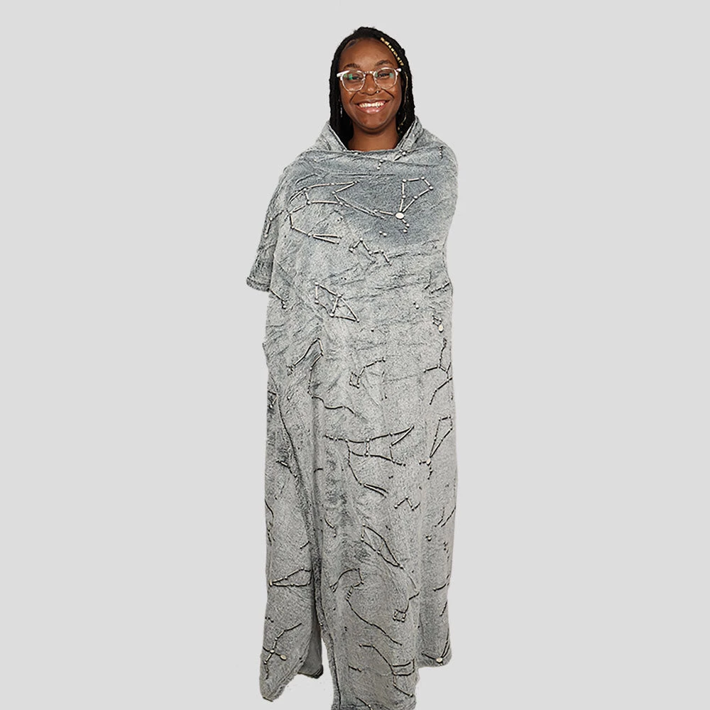 The wondrous night sky has inspired generations of humans to imagine what lies beyond. We made this dress as an homage the amazing Cartographer of the Universe, Margaret Geller. She has spent her lifetime dedicated to the unthinkable task of mapping the universe to understand the patterns of galaxies we see today. Get cozy with the beauty of the night sky!