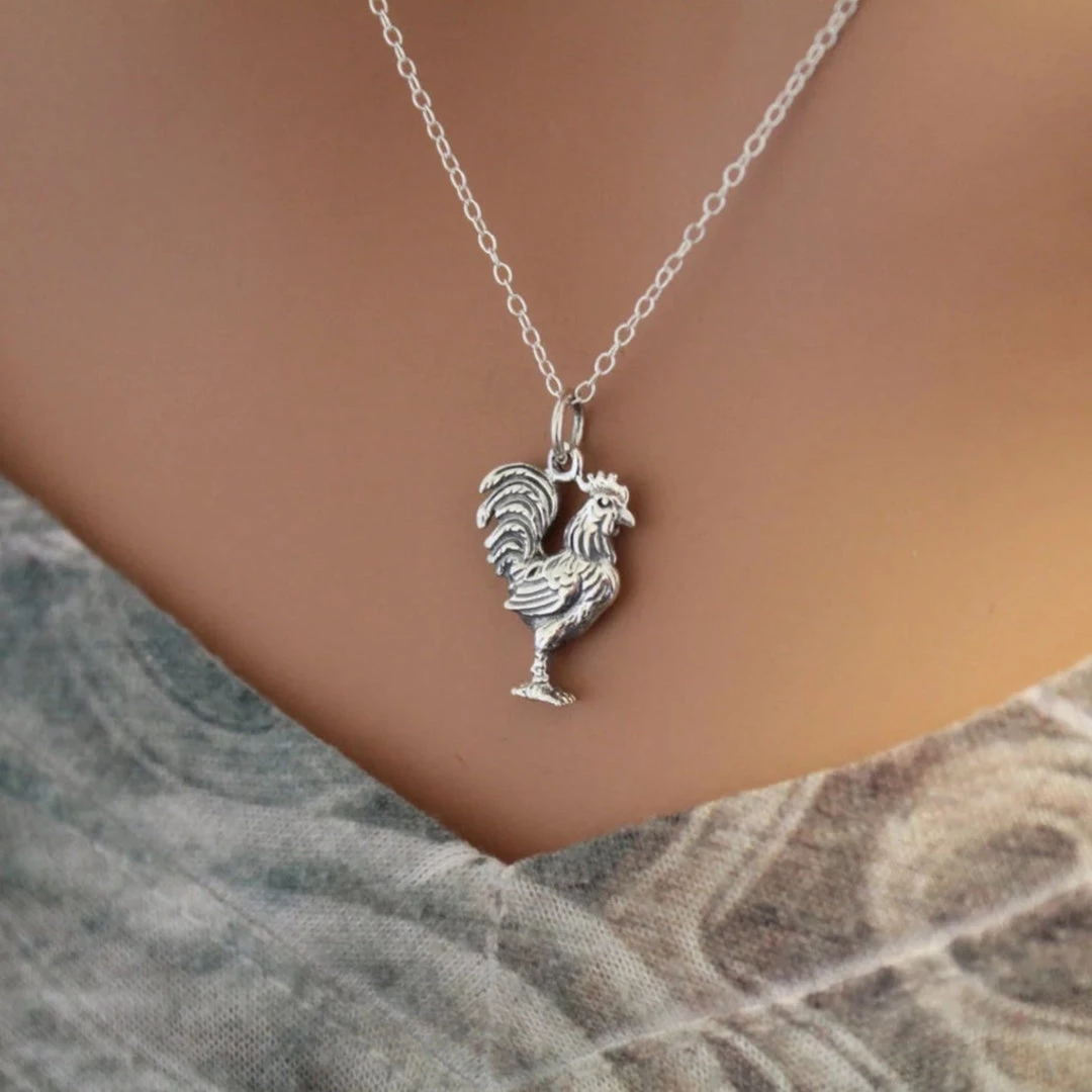 Rise and shine! This necklace goes out to our fine feathered friends of the coop. These fellows not only produce the ever-versatile egg in large numbers, but they also keep the environment healthy by eating plant-devouring pests and the soil nurtured by them produces less runoff leading to healthier water systems. We appreciate them and we hope you do too!
