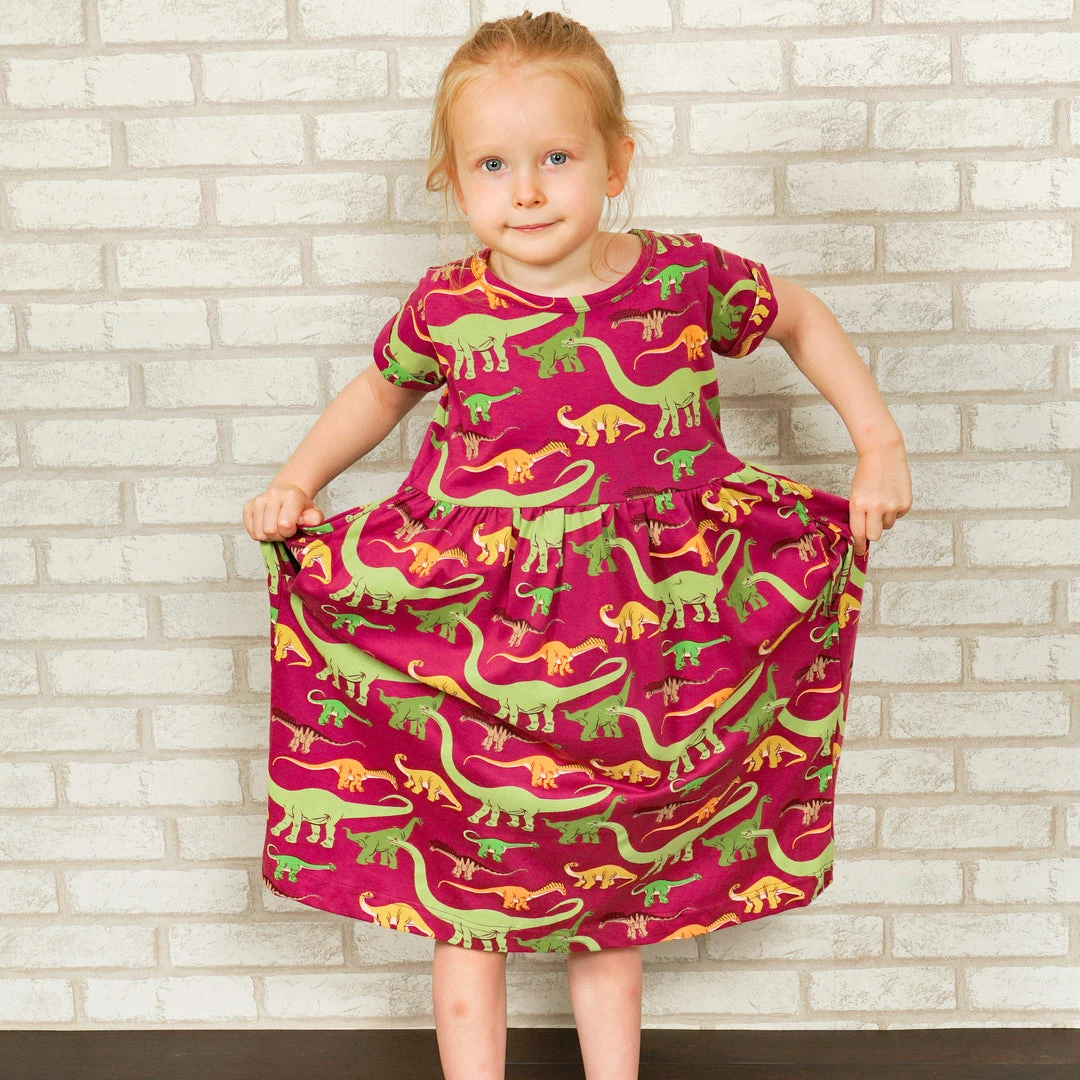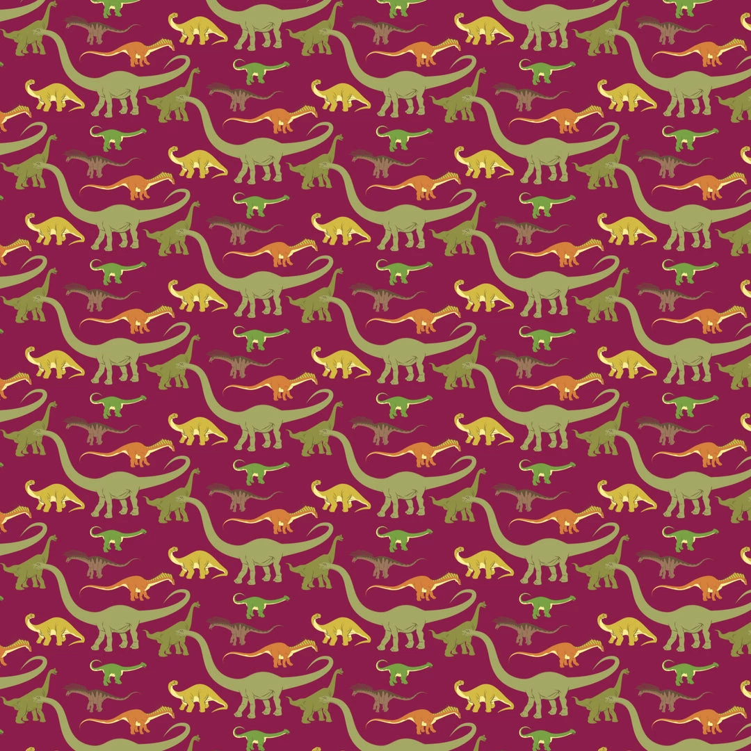 - Color: Fuchsia with green, yellow, and orange multicolored sauropods dinosaur print