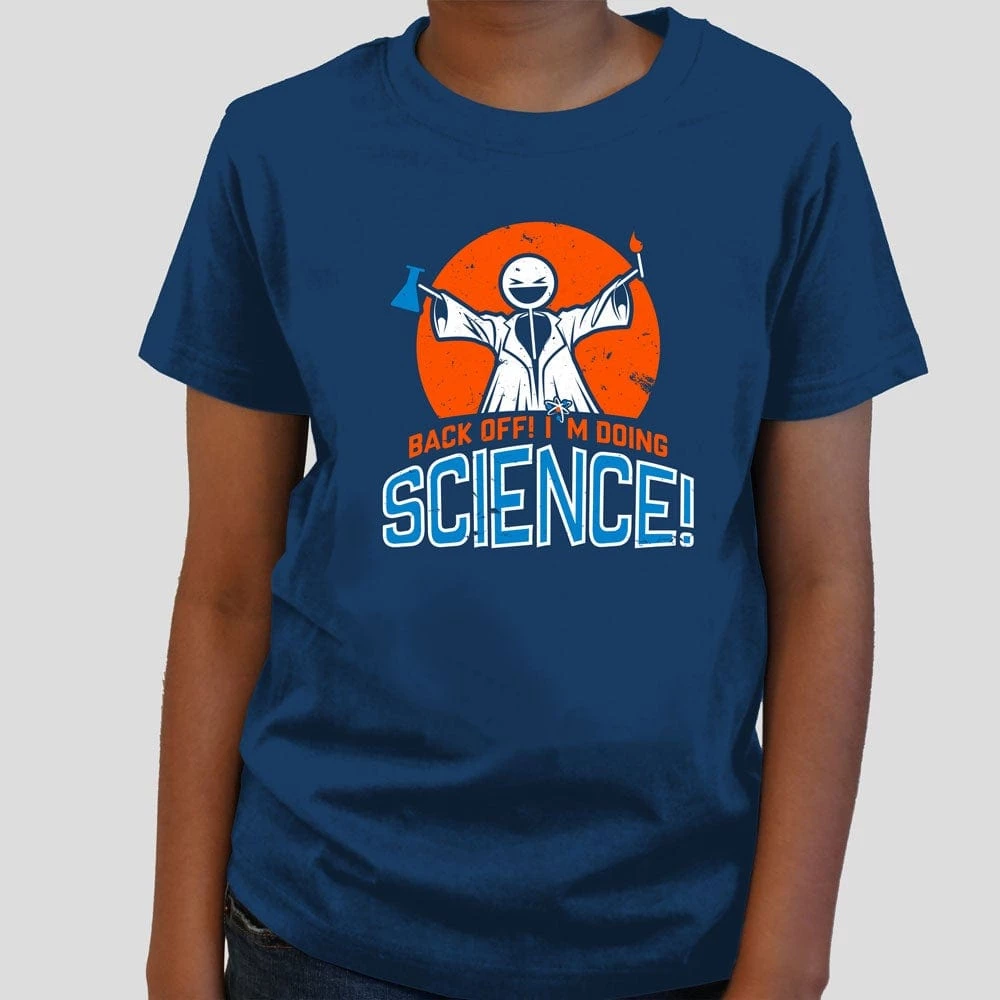 Watch me perform a science experiment or make a great discovery; otherwise, back off, I’m doing science. Before experimenting, a scientist will always warn anyone in the lab of the potential hazards, precautions, or correct lab safety. As a scientist wearing this t-shirt, you can inform people and look fashionably dressed!