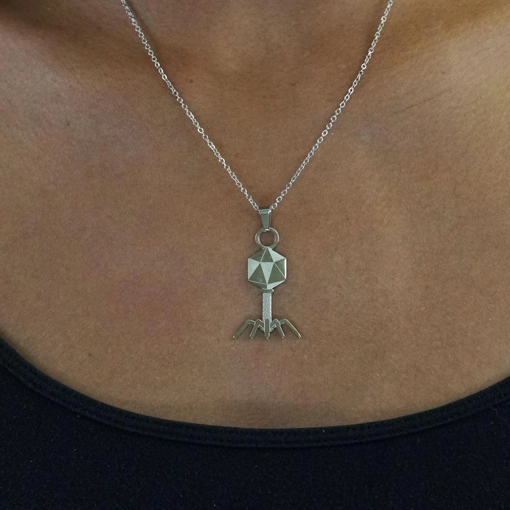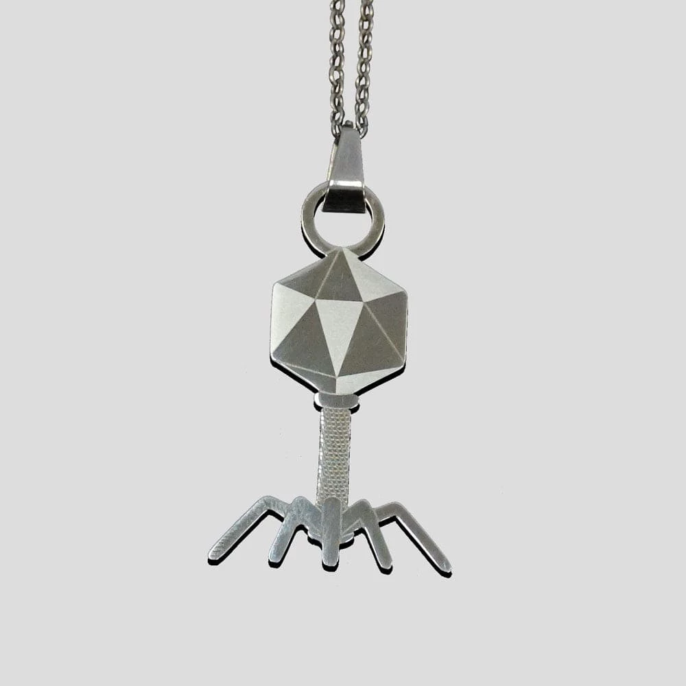 Bacteriophages are viruses that infect and use bacterial resources. Like other viruses, bacteriophages have to find and infect a host in order to reproduce. Although this may sound terrifying, sometimes phages can treat against bacterial diseases for people. You may not go viral, but you will definitely turn heads with this awesome necklace!