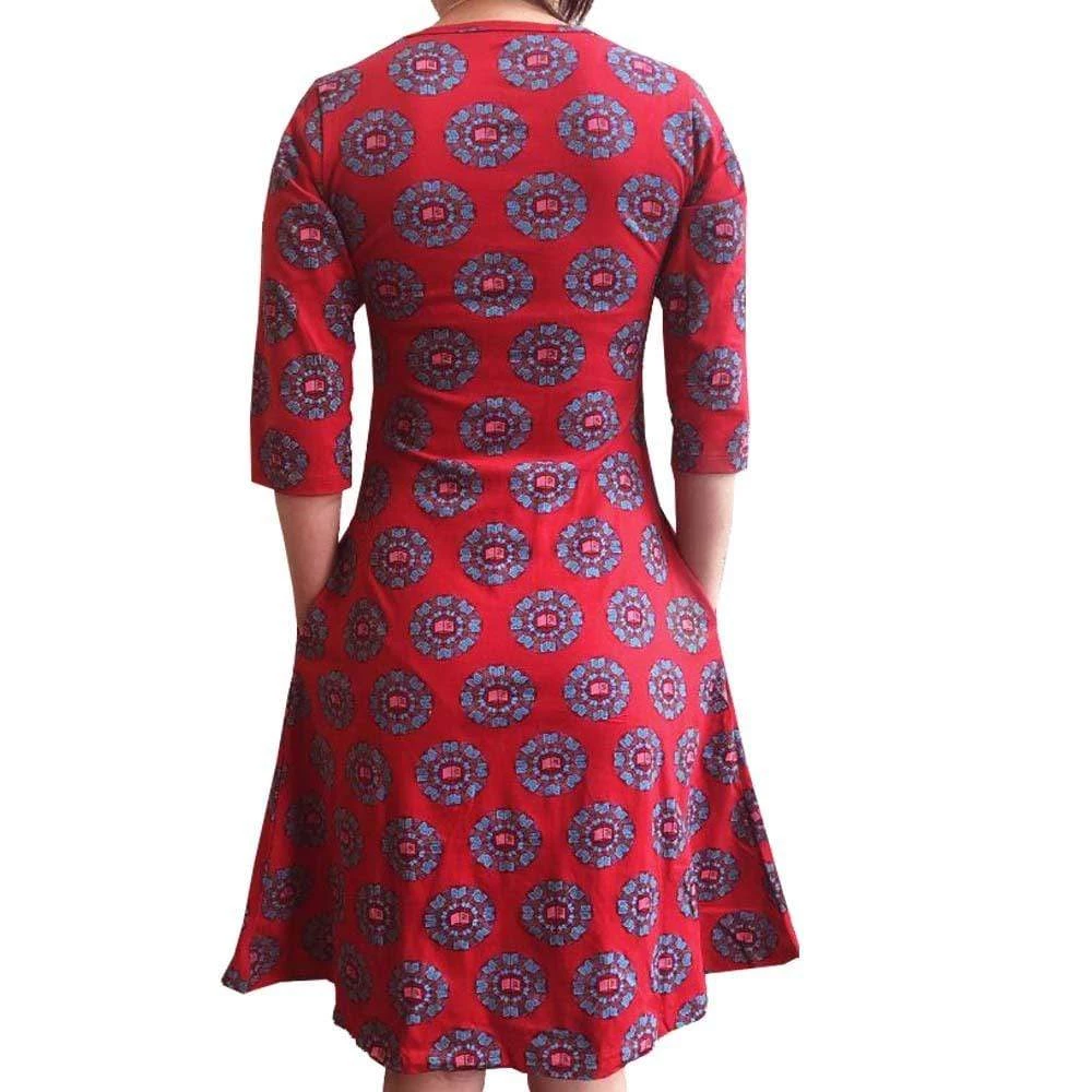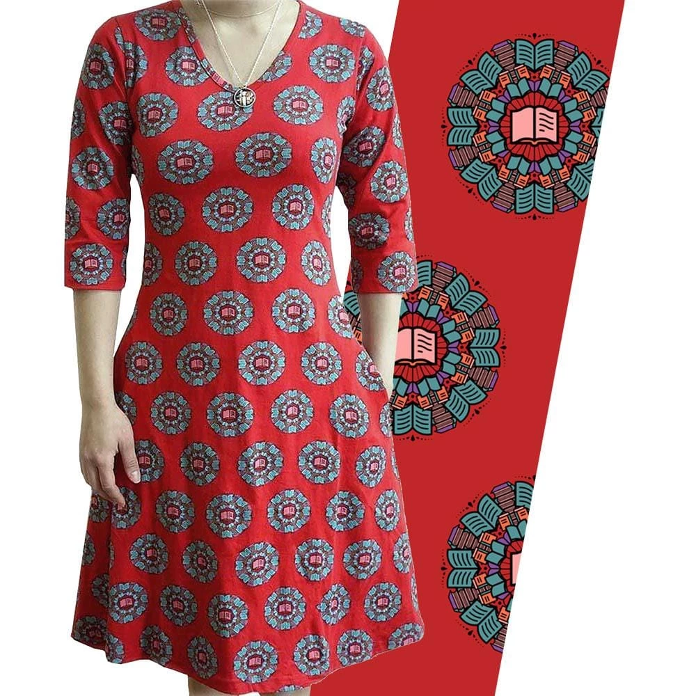This organic cotton, 3/4 sleeve dress features a a literature mandala design. Available in plus size dresses too!