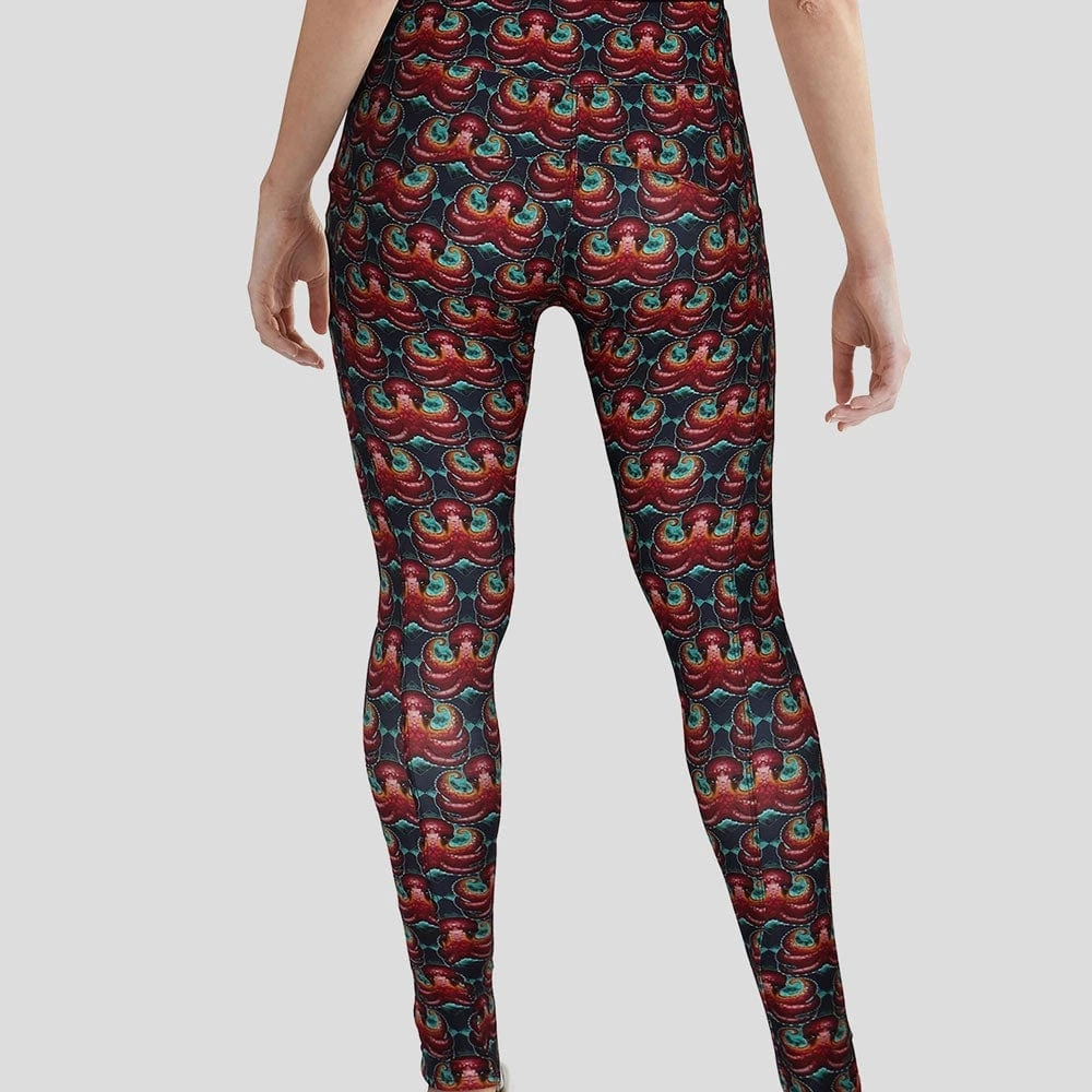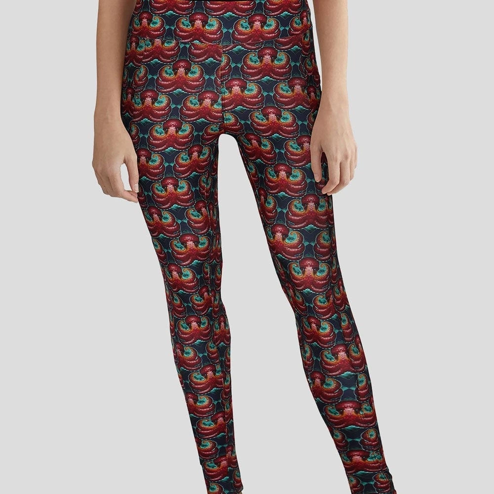 The depths of the sea hold many creatures from terrifying to interesting. One unique animal, the coconut octopus, gets its name from the way it makes dens out of discarded coconut shells found along the seafloor. The design of these leggings is truly fascinating!