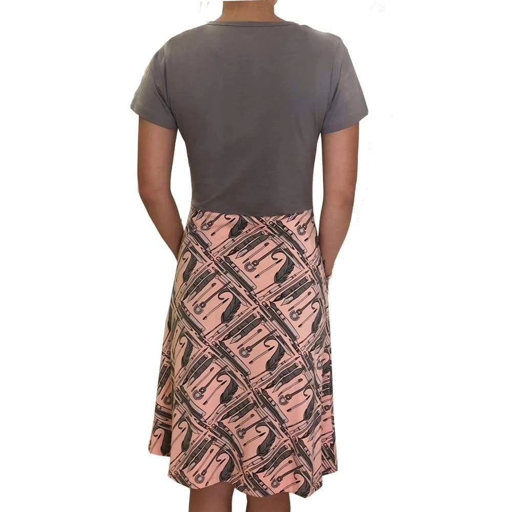 - Plain heather grey cotton top flows into a beautiful pastel pink dress
