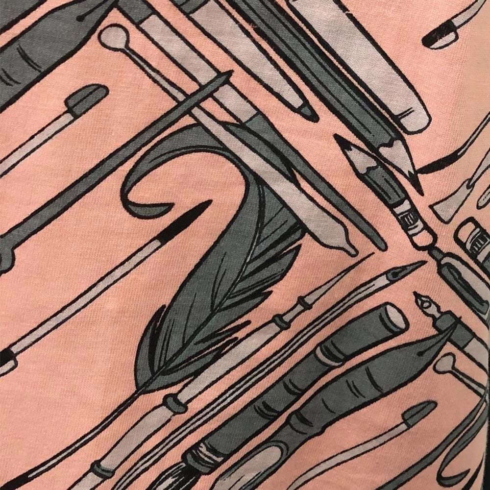 This design is for all of our fans of graphology! Writing is one of the most important inventions of humanity. Writing allowed us to create art, record our history, and spread our thoughts and ideas for all to know. Over time, the writing instruments and techniques have changed as writing has developed. We created this design to show the evolution of writing implements from the finger on cave walls all the way back to the finger on touchscreens!