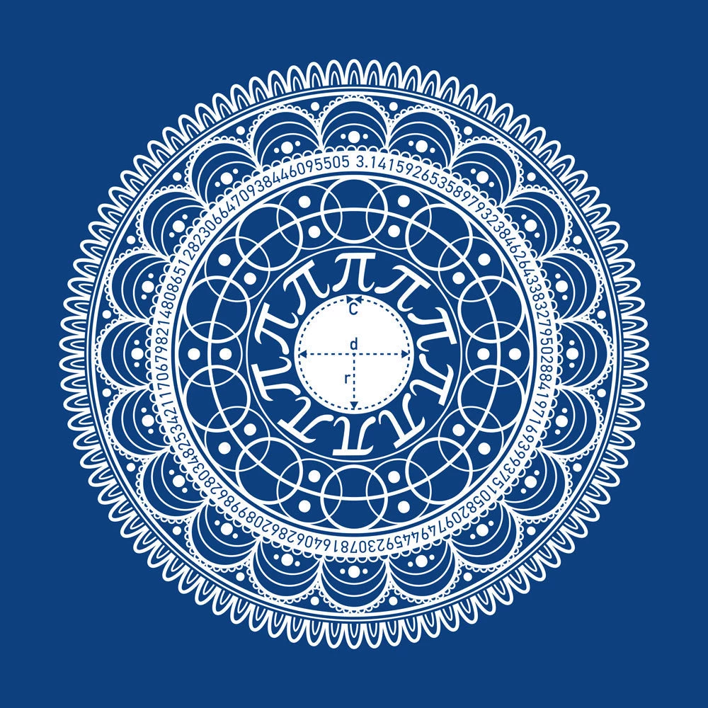 Let the balance be restored when you center your attention on our newest math-inspired design! The word mandala comes from Sanskrit meaning “circle.” They have a concentric structure that symbolizes unity and harmony. Drawing from both the inherent art of geometry and a love of mathematics, may this design help you meditate on the wonders of Pi, whatever your favorite flavor may be.Â