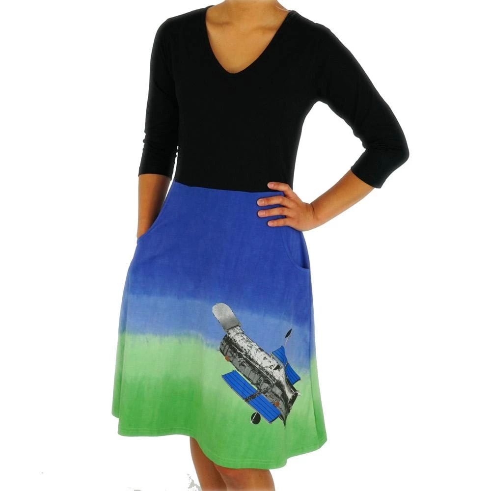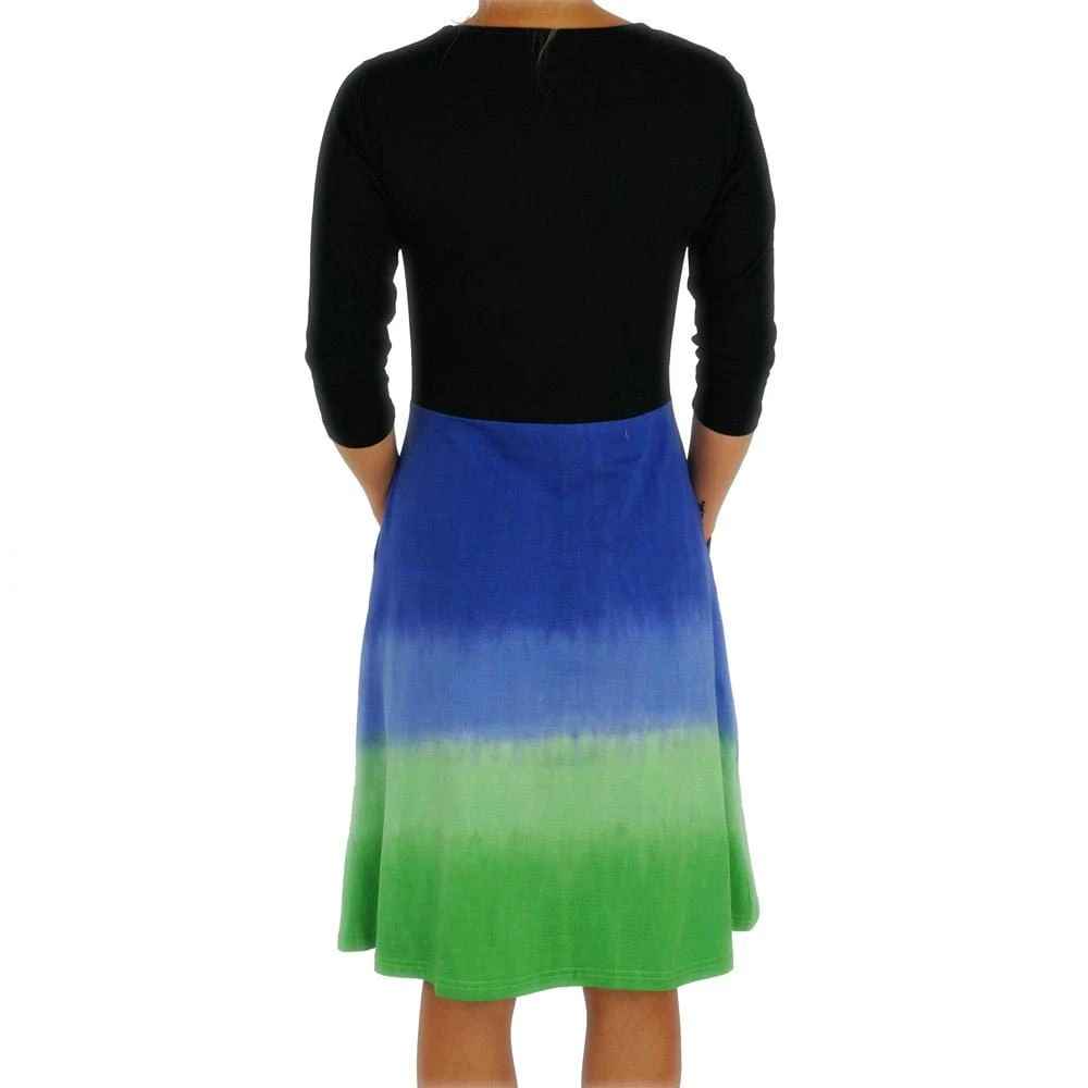 - Dress features pockets and v-neckline top with green & blue ombré print