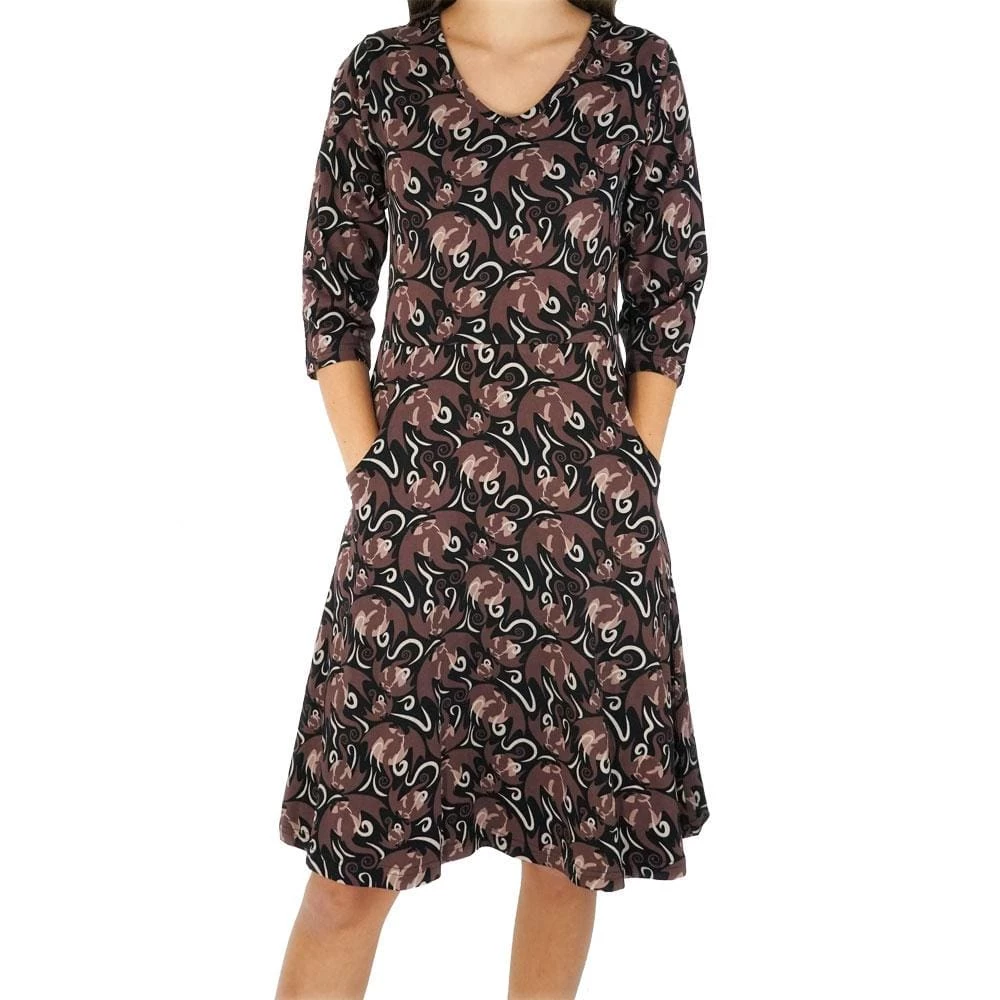 On a quest to rekindle your wardrobe? Add a bit of flare to your hoard with this geeky dragon-inspired dress with pockets design! Popularly known as legendary fire-breathing reptiles of the skies, dragons are often depicted as fierce foes, and sometimes even gentle companions. If you strive to be the ruler of dragons, this Flying Dragon dress with pockets is a great place to start your journey!