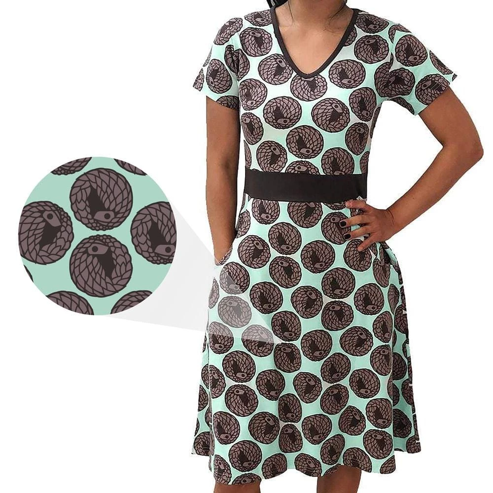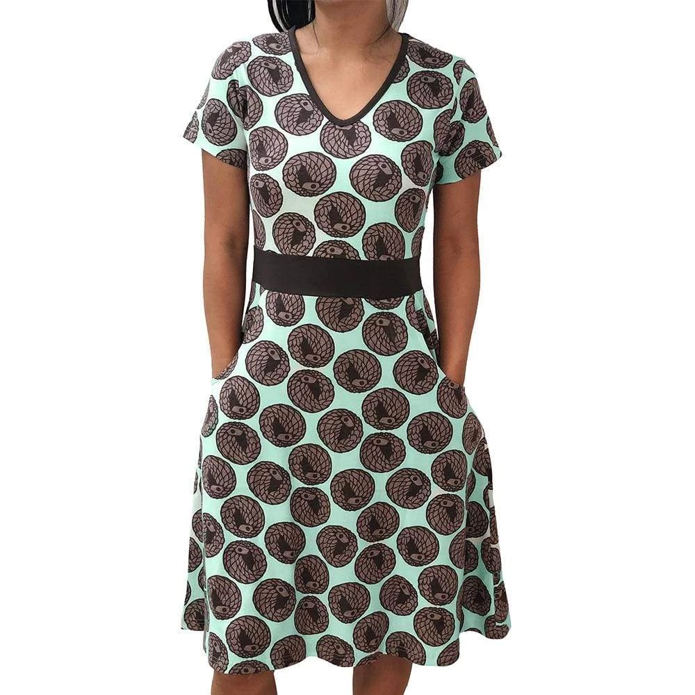 - Short sleeve, fit & flare women’s dress with pockets featuring a scoop v-neckline