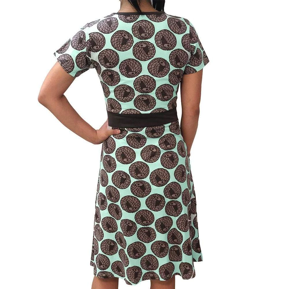 - Screen-printed with all-over-print roly poly pangolin design with brown piping and brown waistband