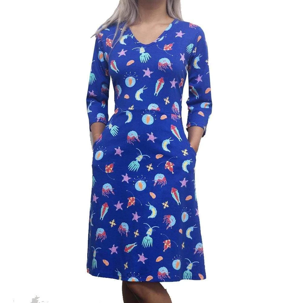- 3/4 length sleeve adults fit & flare dress with pockets