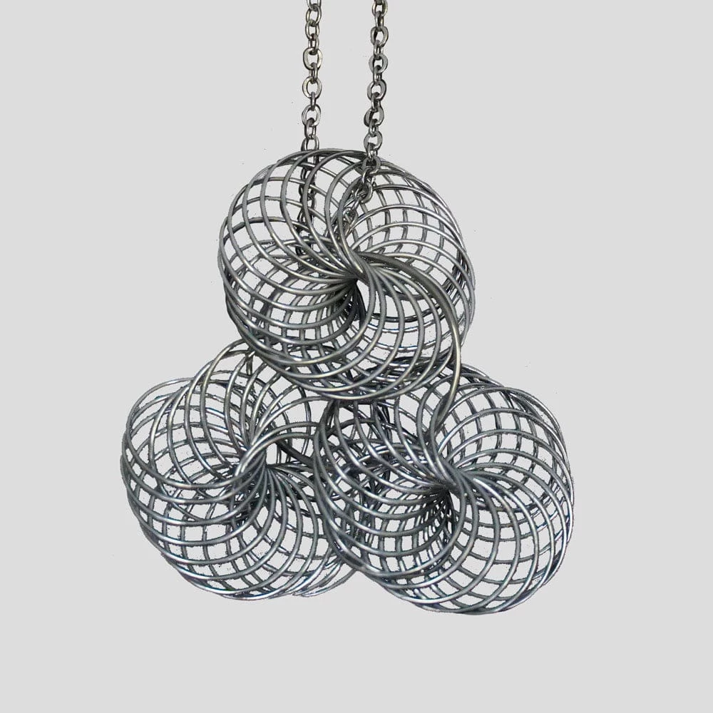 A spirograph is a geometric drawing device that produces mathematical curves known as hypotrochoids and epitrochoids. Invented in the late nineteenth century by mathematician and electrical engineer Bruno Abakanowicz, they allow you to create a wide range of kaleidoscopic designs. In fact, it didn’t become a popular toy until the 1960s. Try not to spiral out of control with this creative necklace!