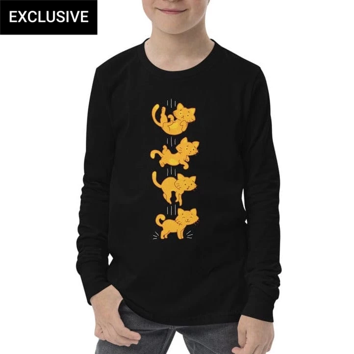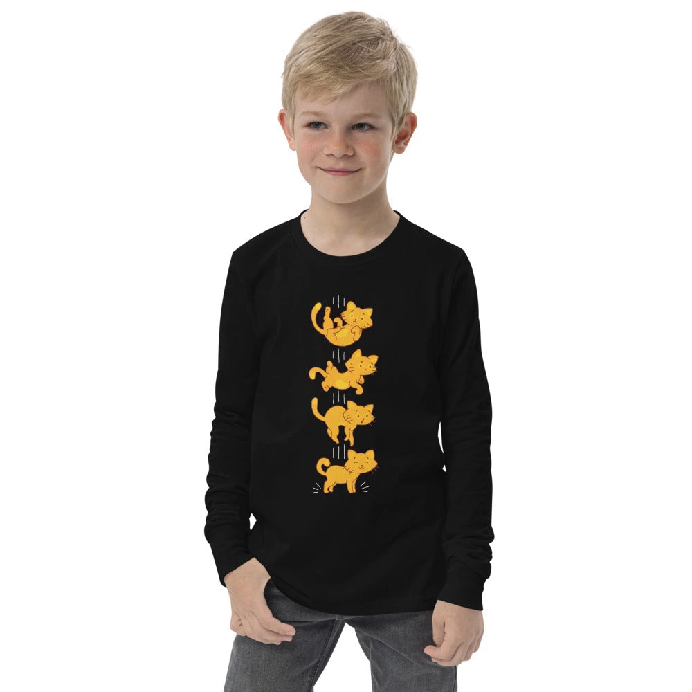 A cat always falls on its feet! We wish the same was true for kids too! The Youth Long Sleeve Shirt is made of Airlume combed and ringspun cotton, which is known for its softness and durability. The shirt has a regular fit, classic crew neck, and ribbed cuff.