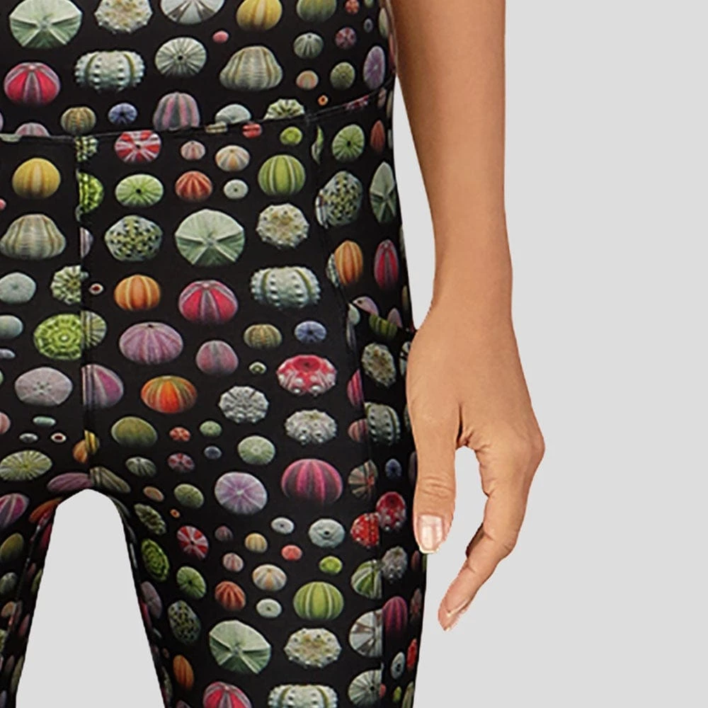 Urchin for a design with the porcupines of the sea? Sea Urchins live all over the ocean and depth zones. Their looks resemble porcupines or even hedgehogs. Leggings that have deep and functional pockets? That’s the point!