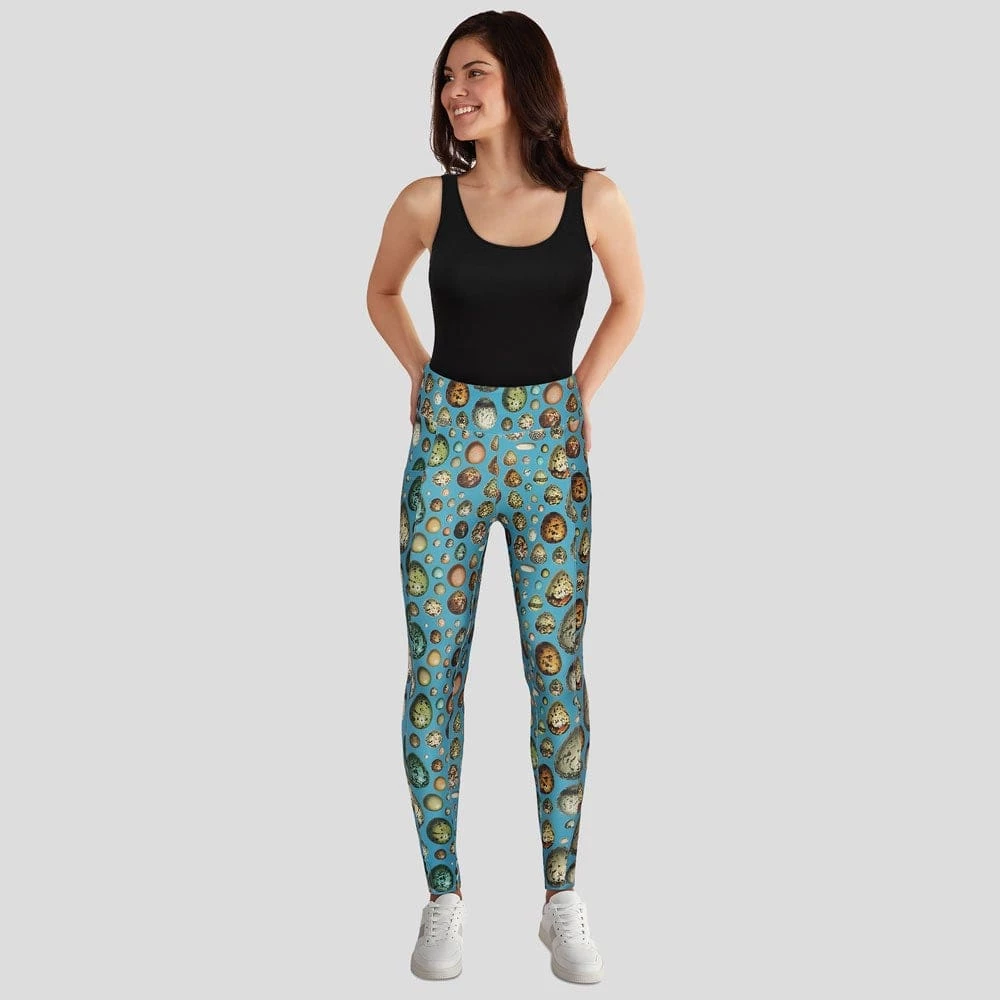 Small eggs, large eggs, green shell, white shell- no matter the style, these leggings show a glimpse of many. An egg is an organic vessel containing the zygote in which an embryo develops until it can survive on its own when the animal hatches. They can come from different birds, reptiles, fish, or even butterflies and moths. Here is another pair of leggings to be “egg-cited” about!