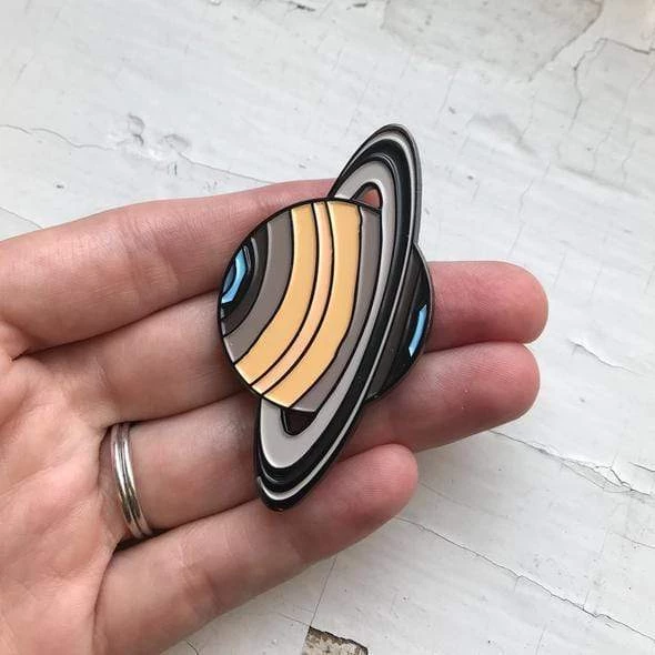 The perfect stocking stuffer gift and what your jean jacket or backpack have been missing! A fun planetary pin featuring the ringed beauty, Saturn. The design of this pin is an original illustration by Lauren Beacham.